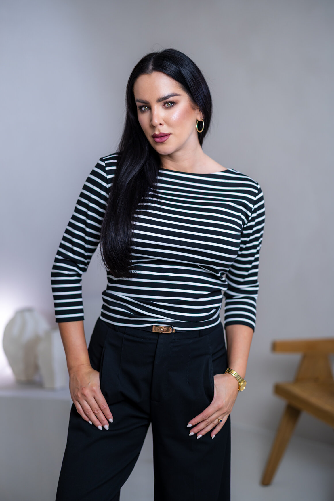 Model má oblečenú veľkosť: S/M - 170. Miery modelky : 91-76-99, výška postavy 174 cm.