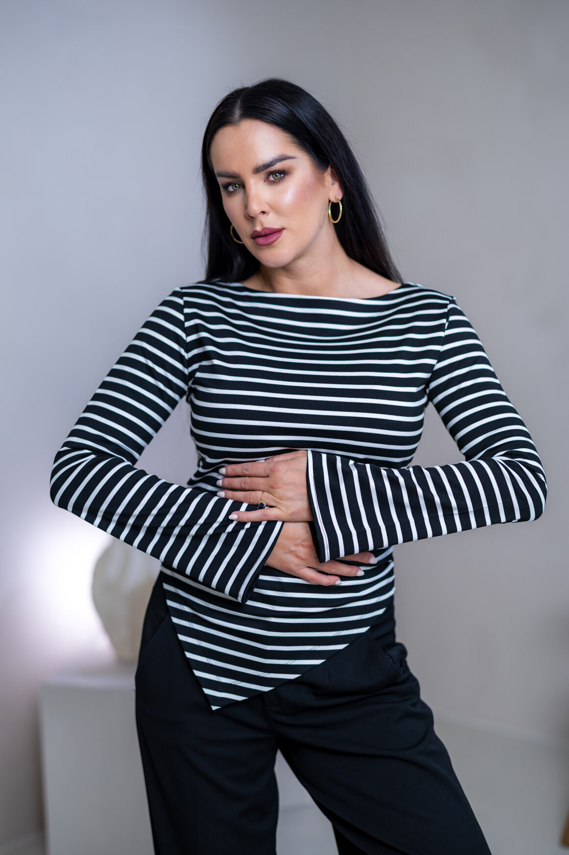 Model má oblečenú veľkosť: S/M - 170. Miery modelky : 91-76-99, výška postavy 174 cm.