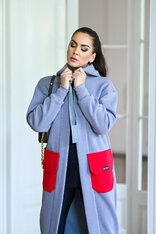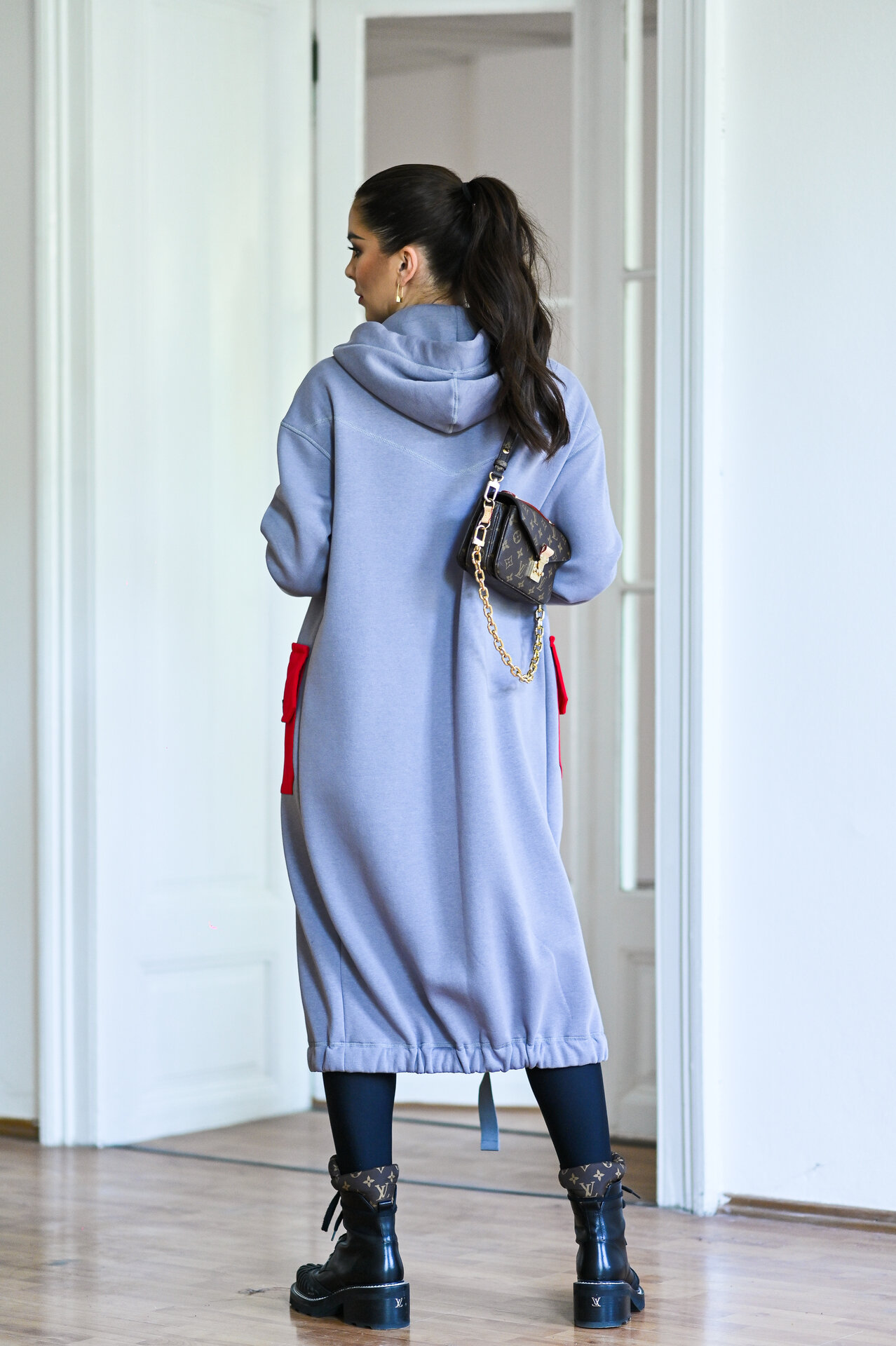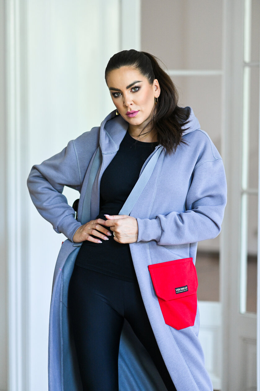 KARDIGAN LIGHT GRAY & RED / 2 DĹŽKY NA VÝBER !