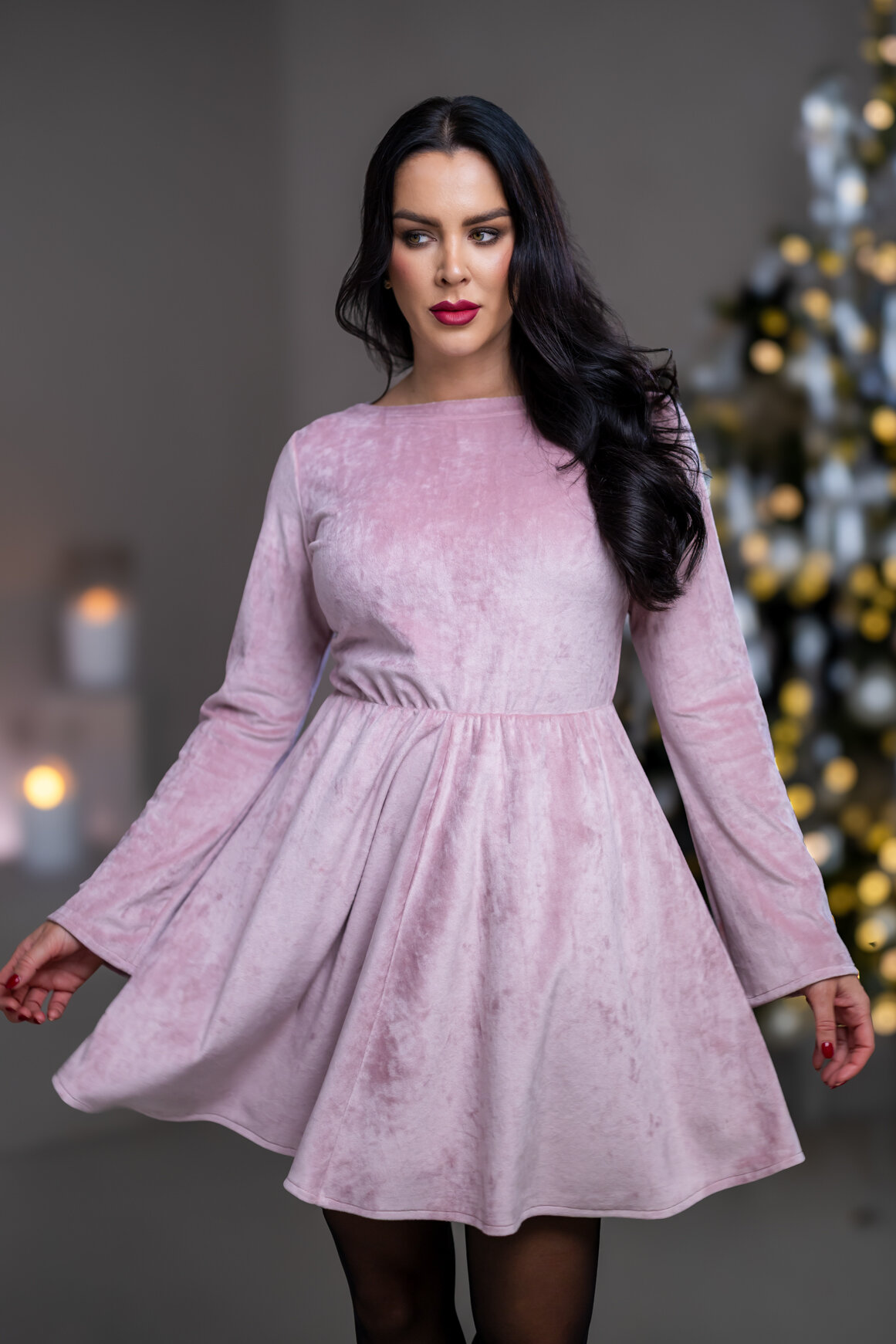 ŠATY “PATRICIA¨ S LODIČKOVÝM VÝSTRIHOM A ROZŠÍRENÝMI RUKÁVMI