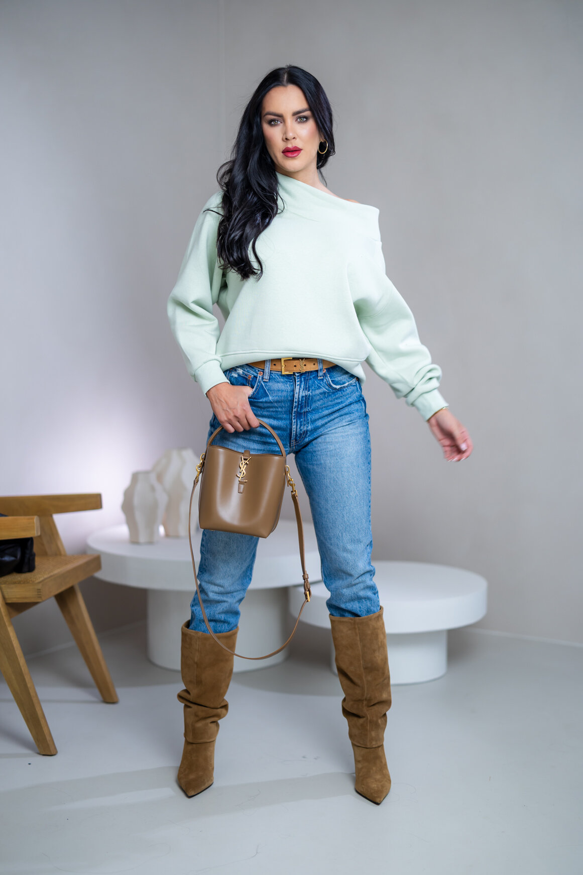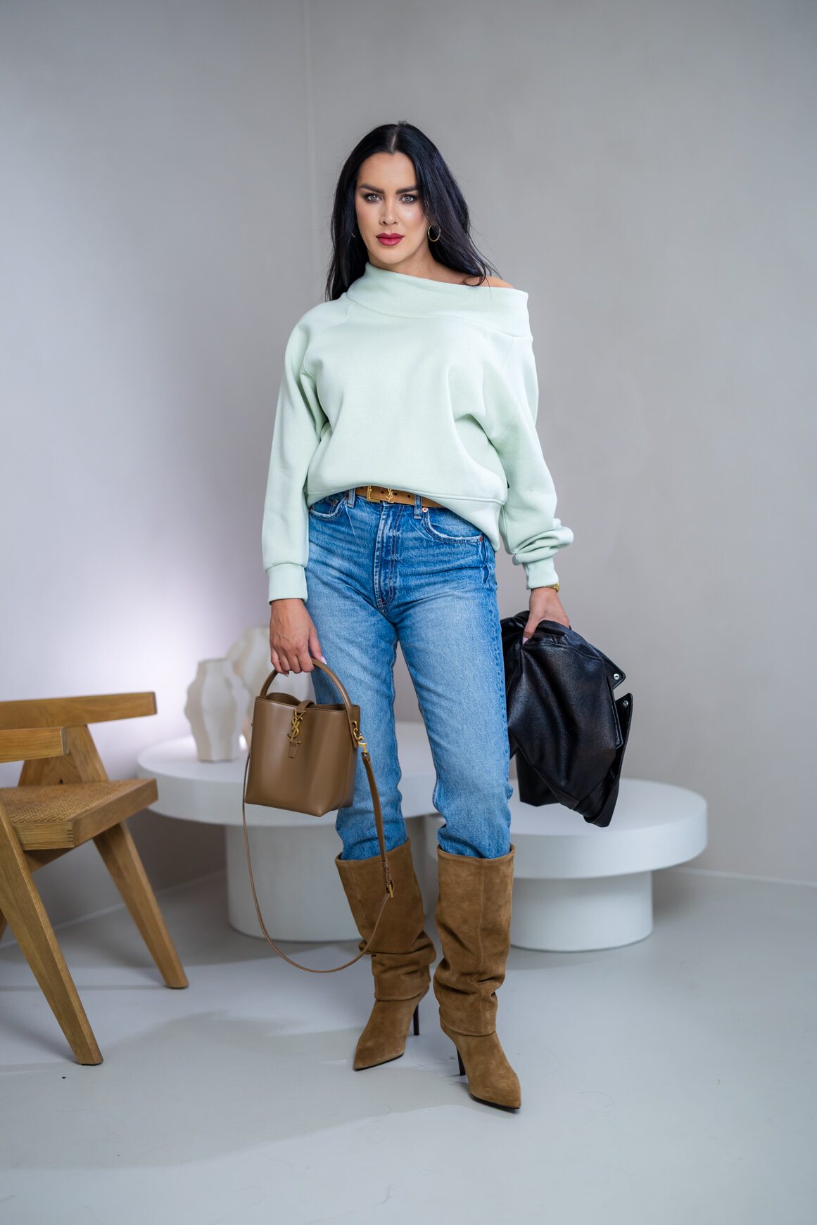 Model má oblečenú veľkosť: S/M - 170. Miery modelky : 91-76-99, výška postavy 174 cm.