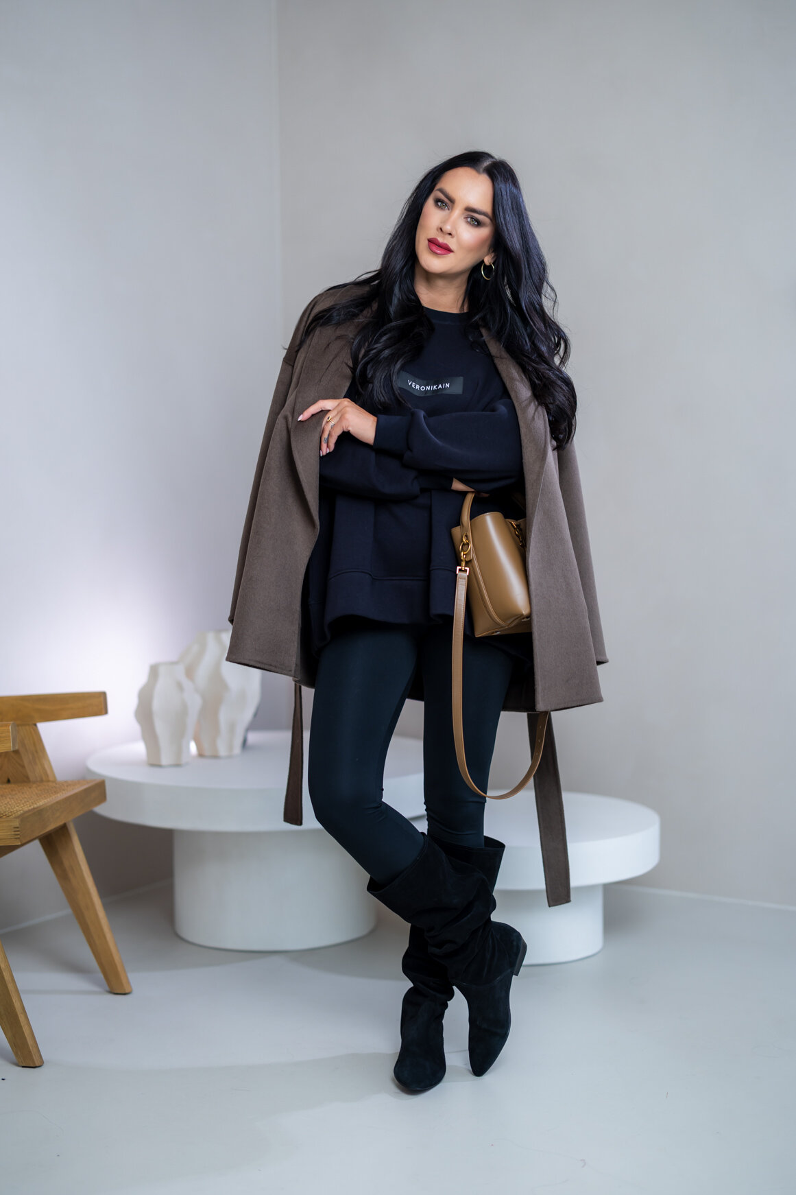Model má oblečenú veľkosť: S/M - 170. Miery modelky : 91-76-99, výška postavy 174 cm.