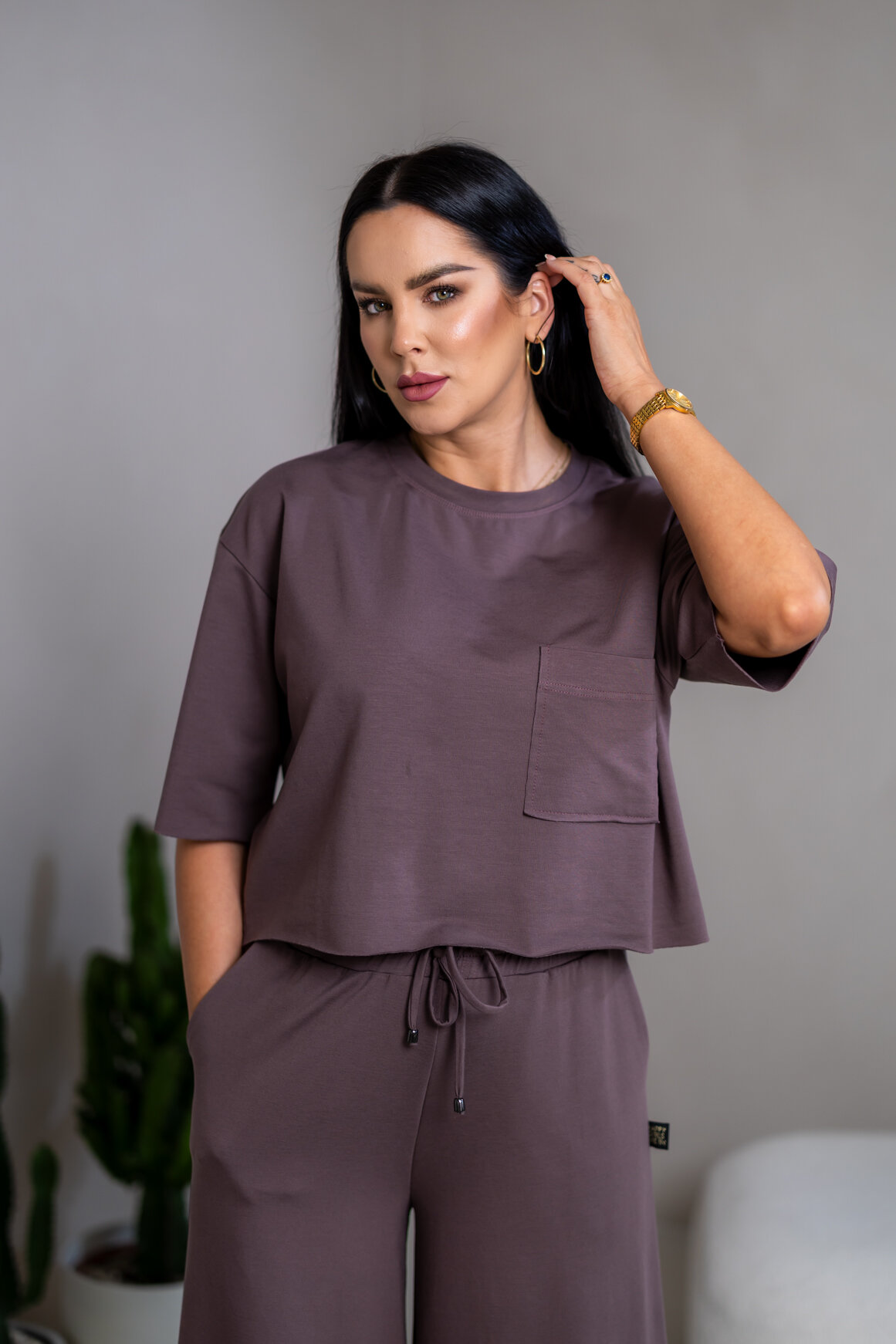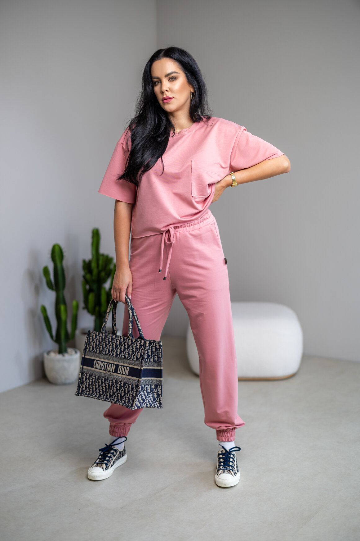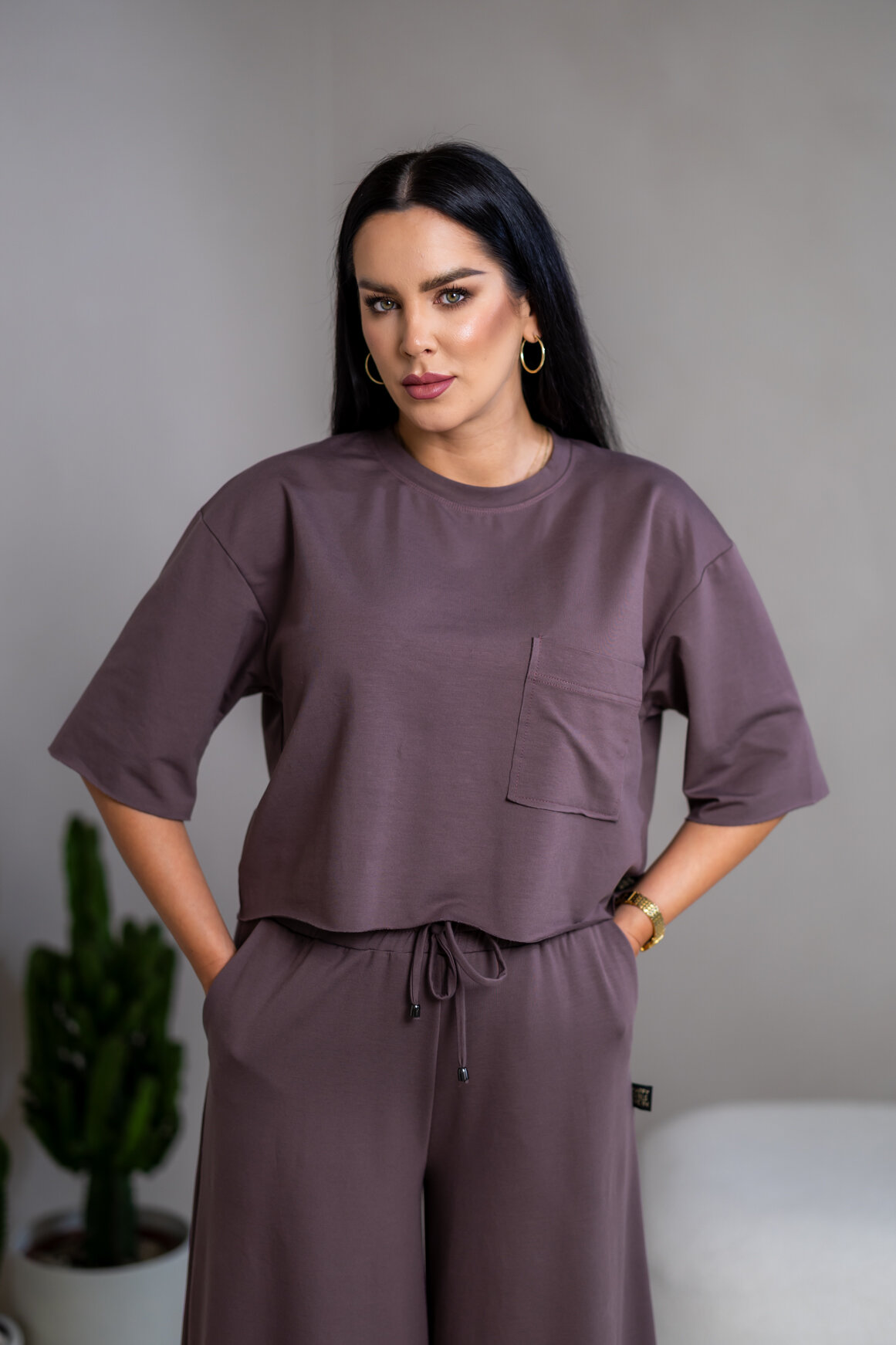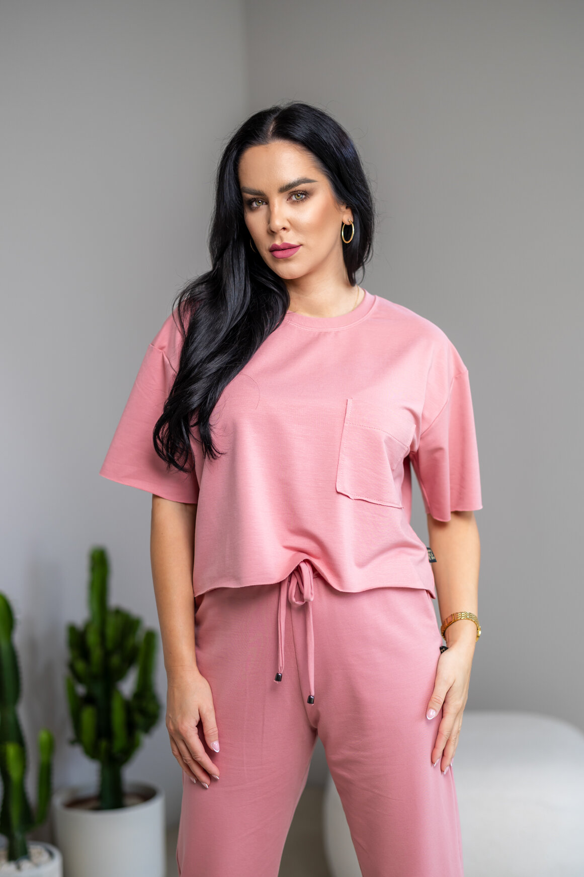 Model má oblečenú veľkosť: S/M - 170. Miery modelky : 91-76-99, výška postavy 174 cm.