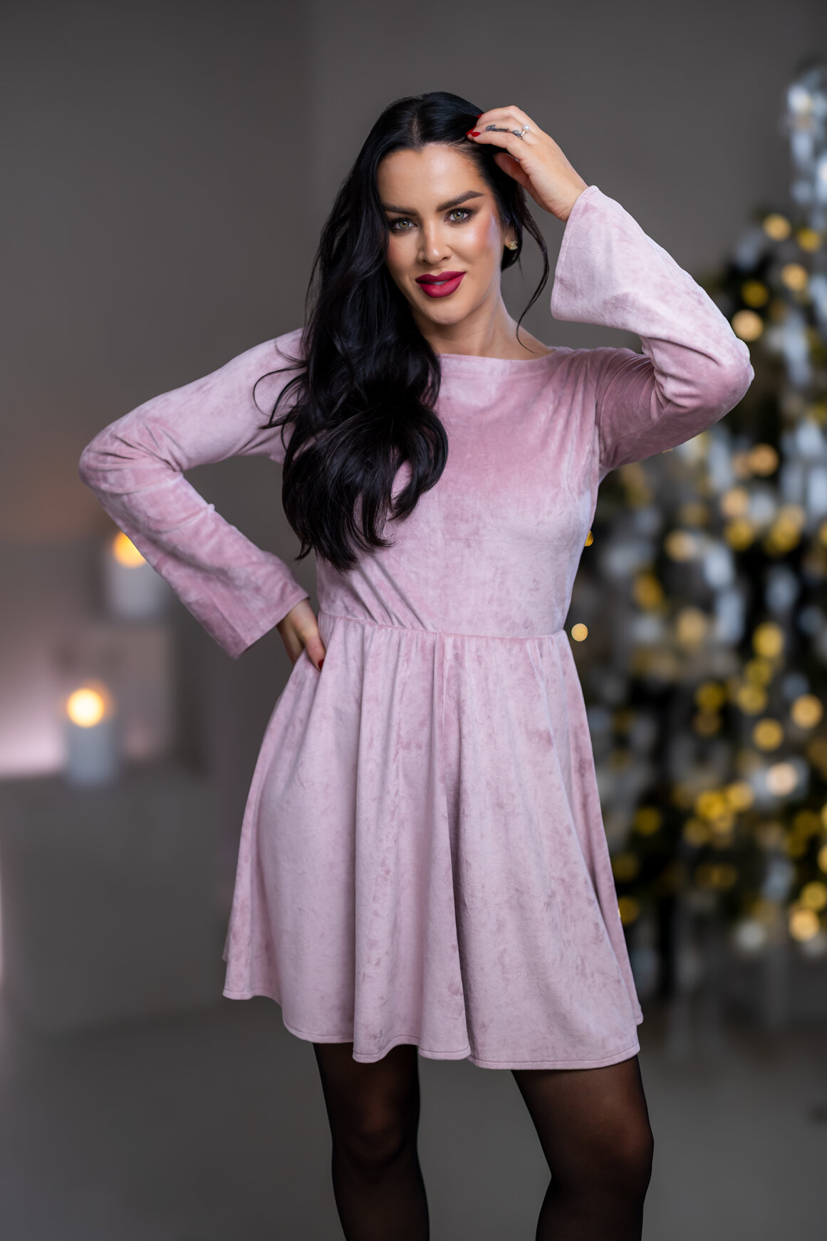 ŠATY “PATRICIA¨ S LODIČKOVÝM VÝSTRIHOM A ROZŠÍRENÝMI RUKÁVMI