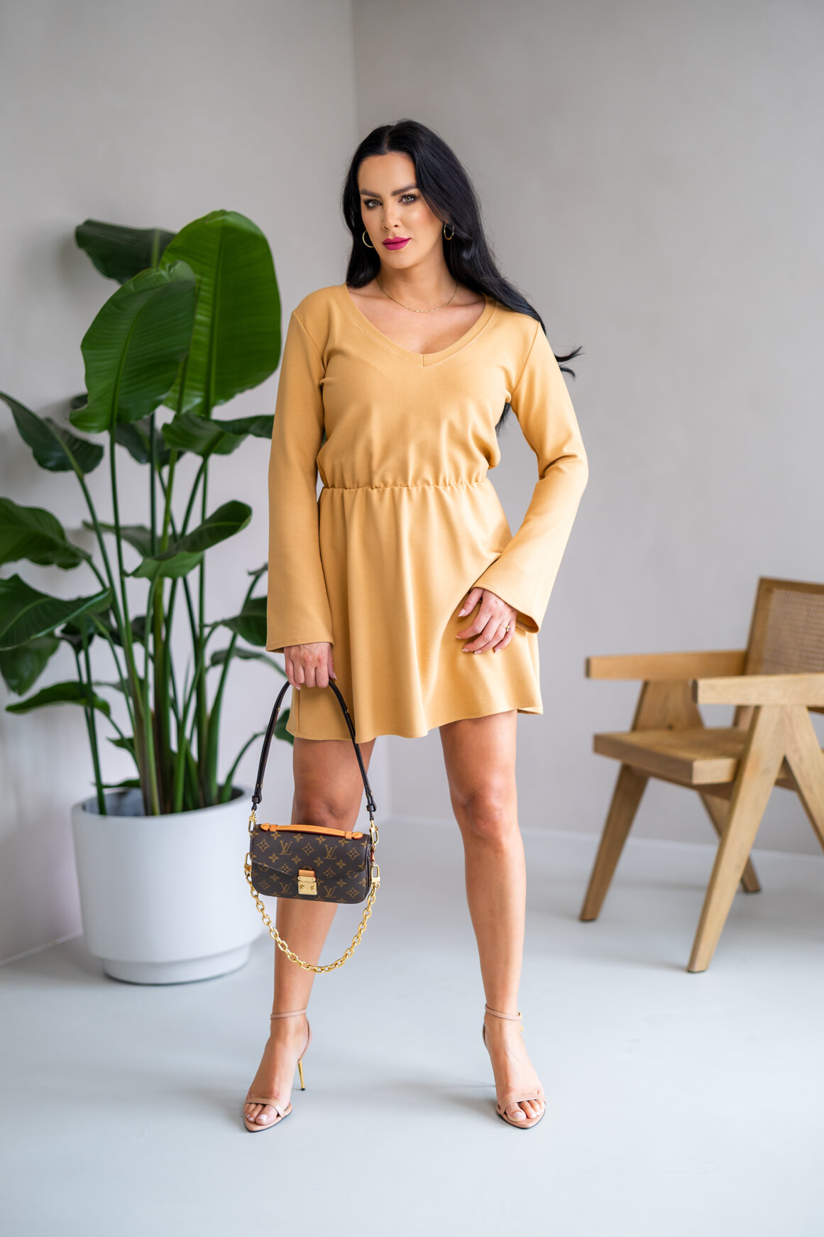 ŠATY “TAMARA" S VÉČKOVÝM VÝSTRIHOM A ROZŠÍRENÝMI RUKÁVMI