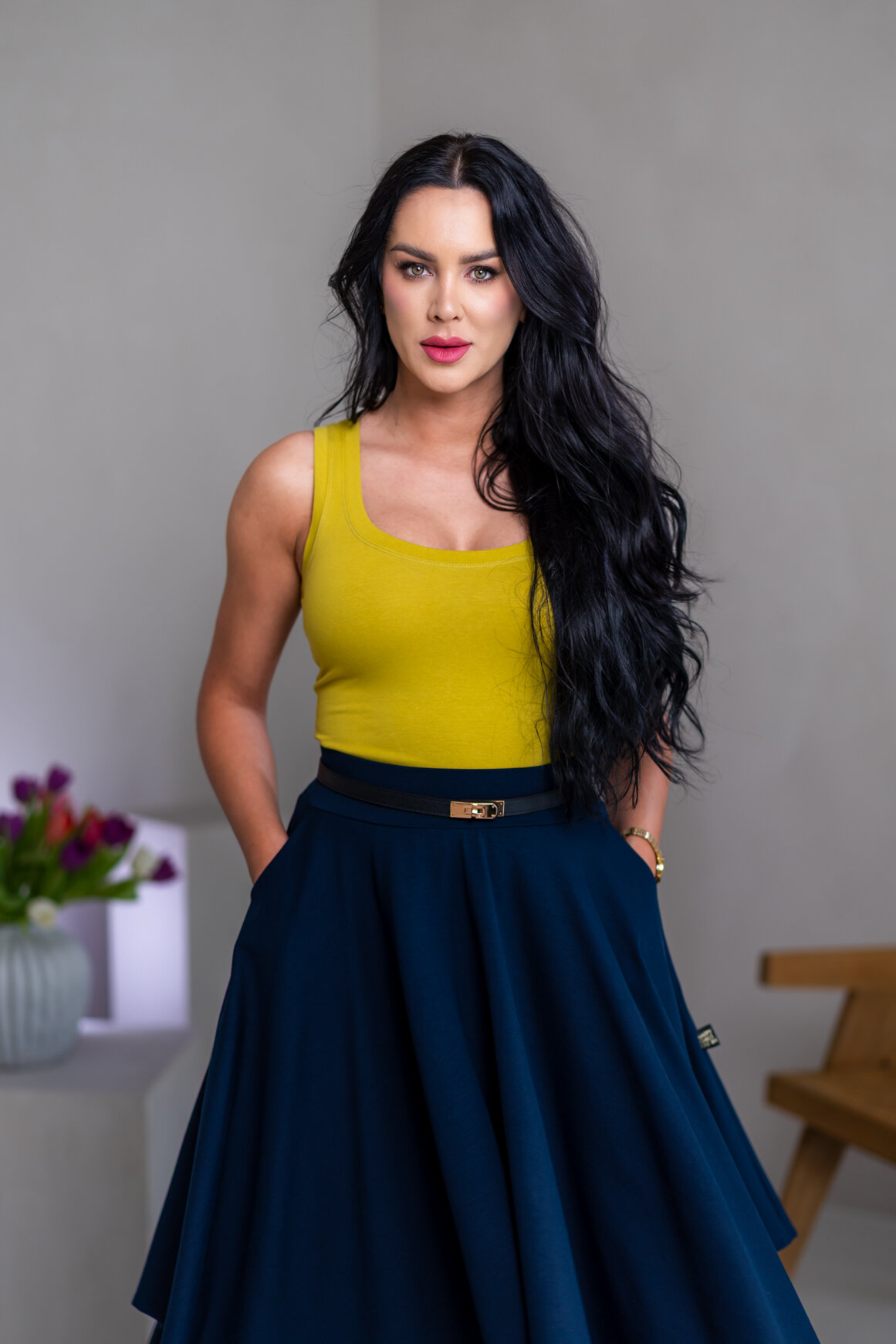 Model má oblečenú veľkosť: S - 170. Miery modelky : 91-76-99, výška postavy 174 cm.