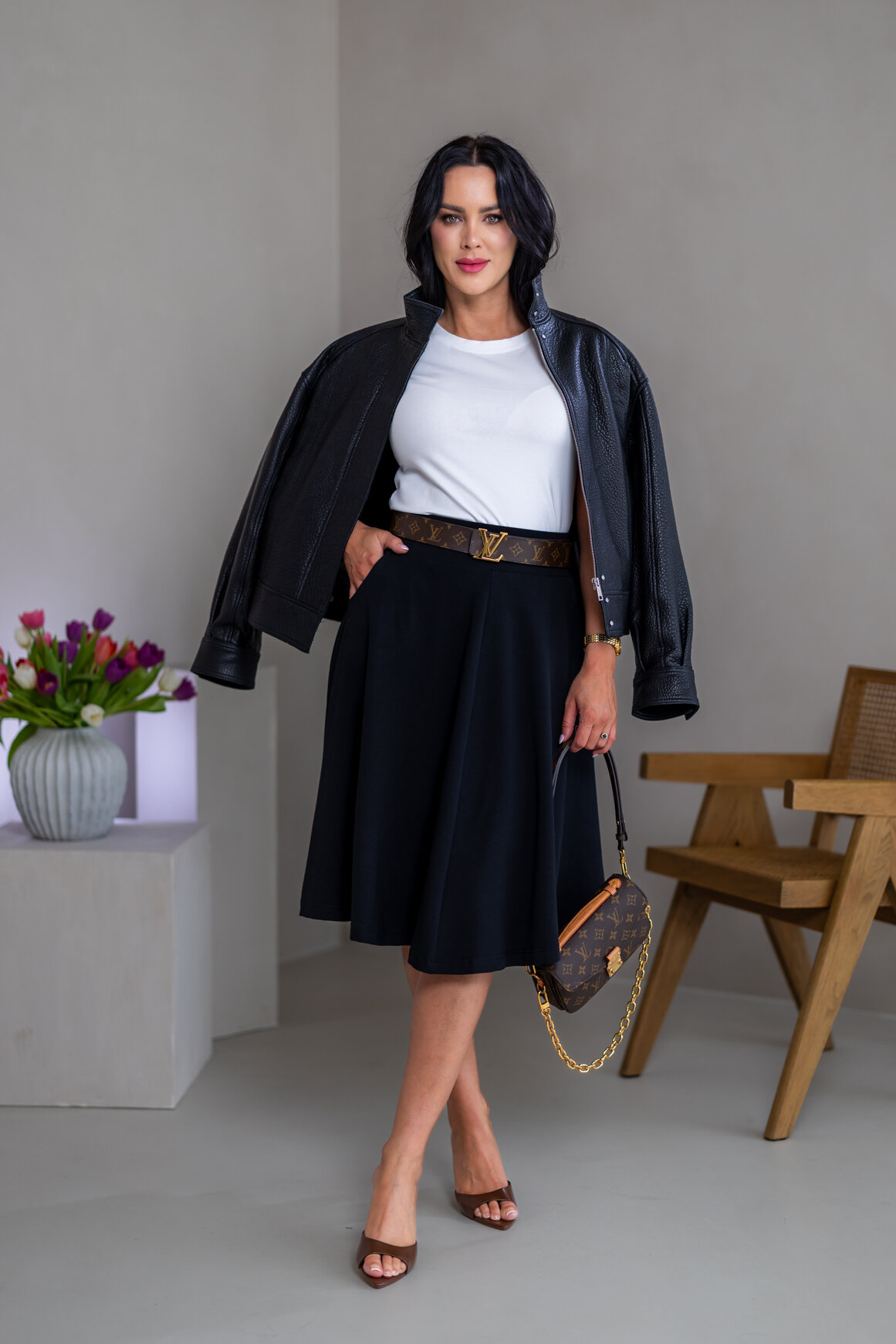 Model má oblečenú veľkosť: S/M - 170. Miery modelky : 91-76-99, výška postavy 174 cm.