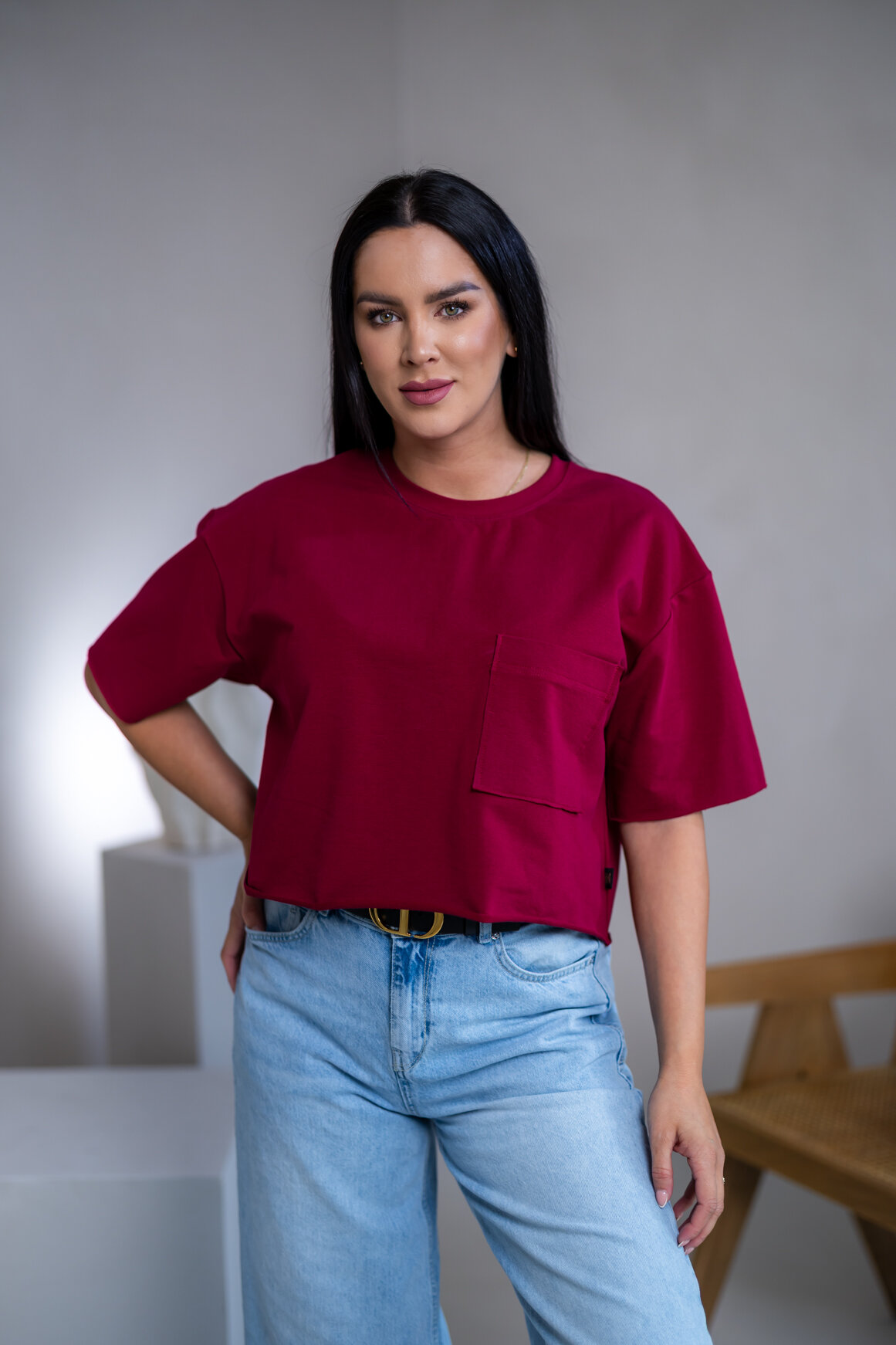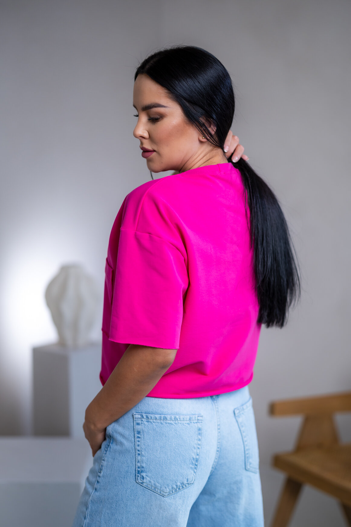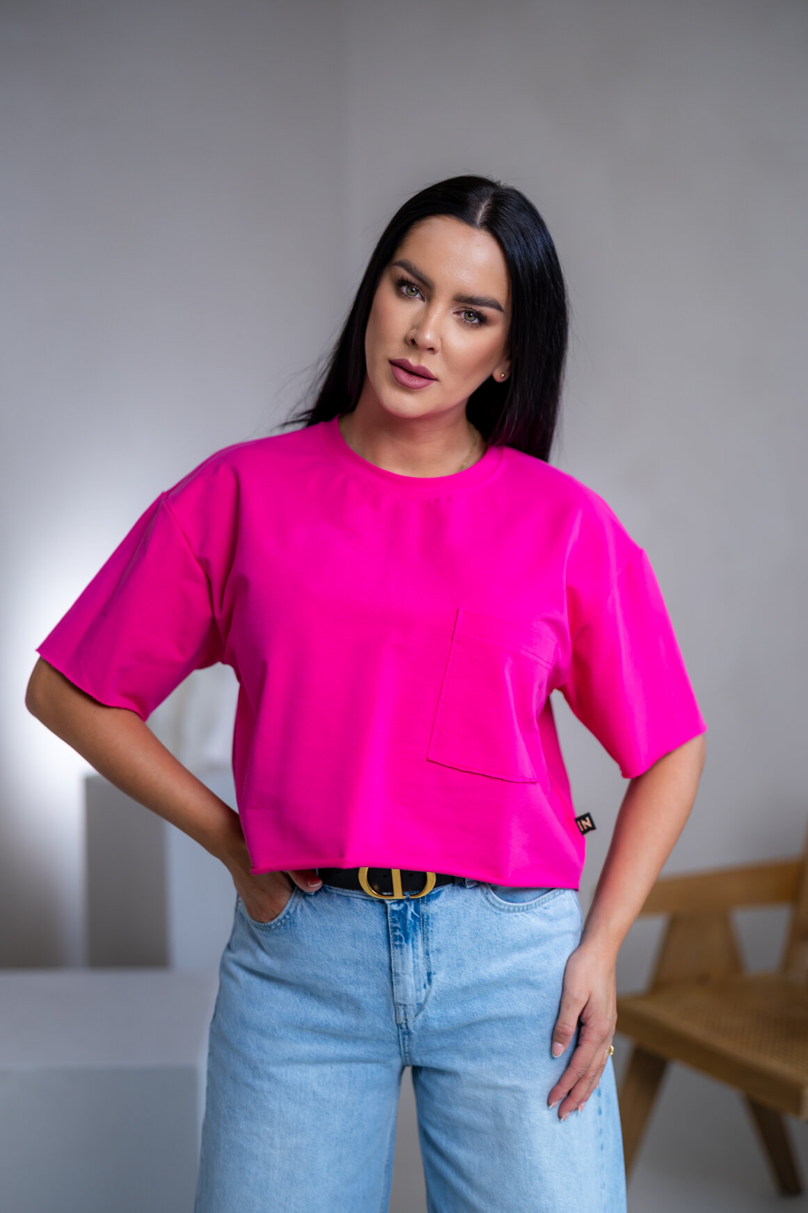 SKRÁTENÉ TRIČKO "MELANIE¨ S VRECKOM / SUROVÉ OKRAJE