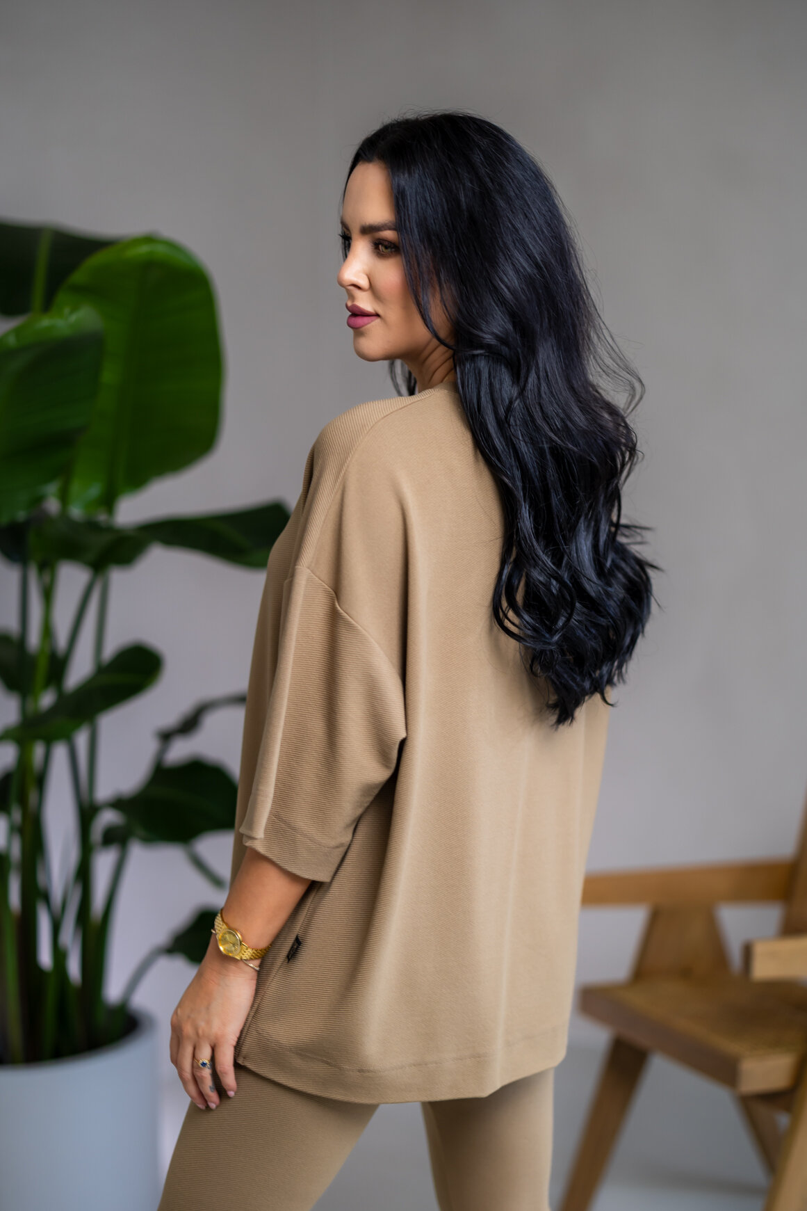 Model má oblečenú veľkosť: S/M - 170. Miery modelky : 91-76-99, výška postavy 174 cm.