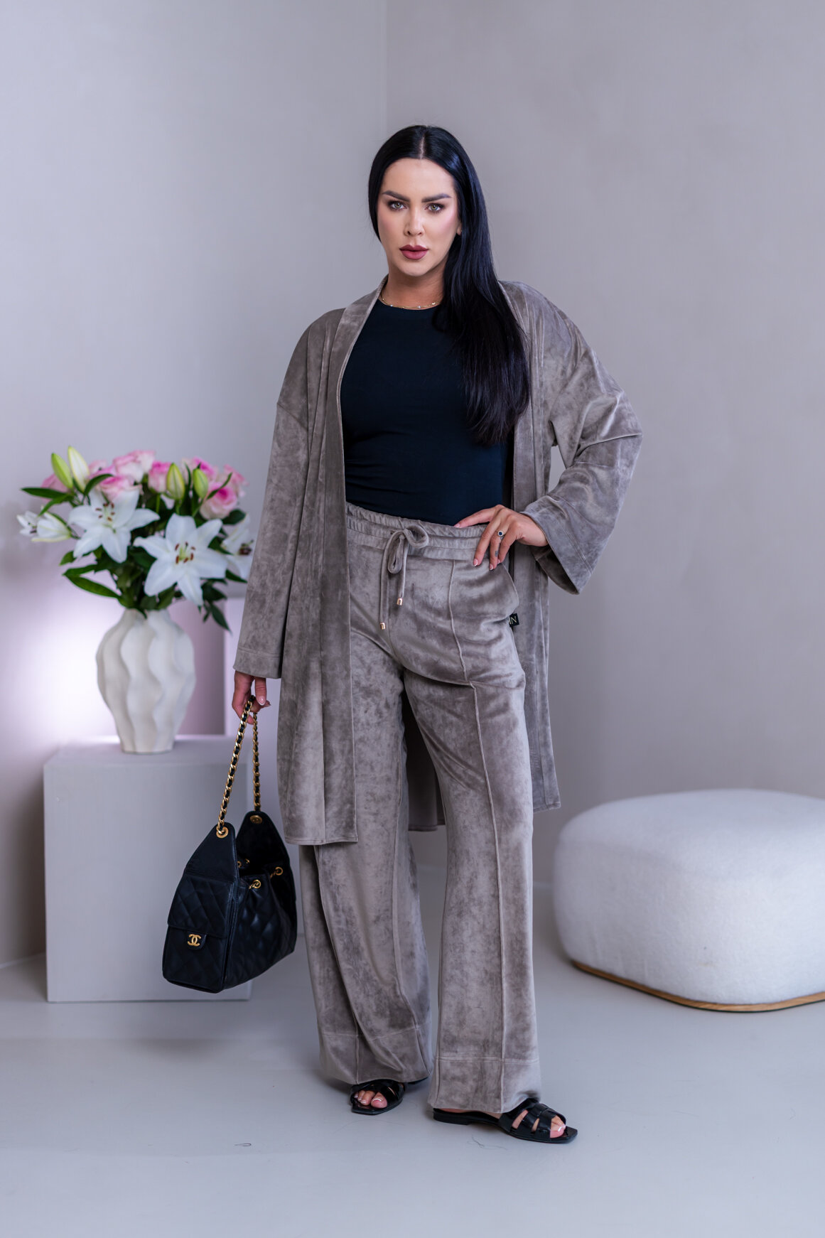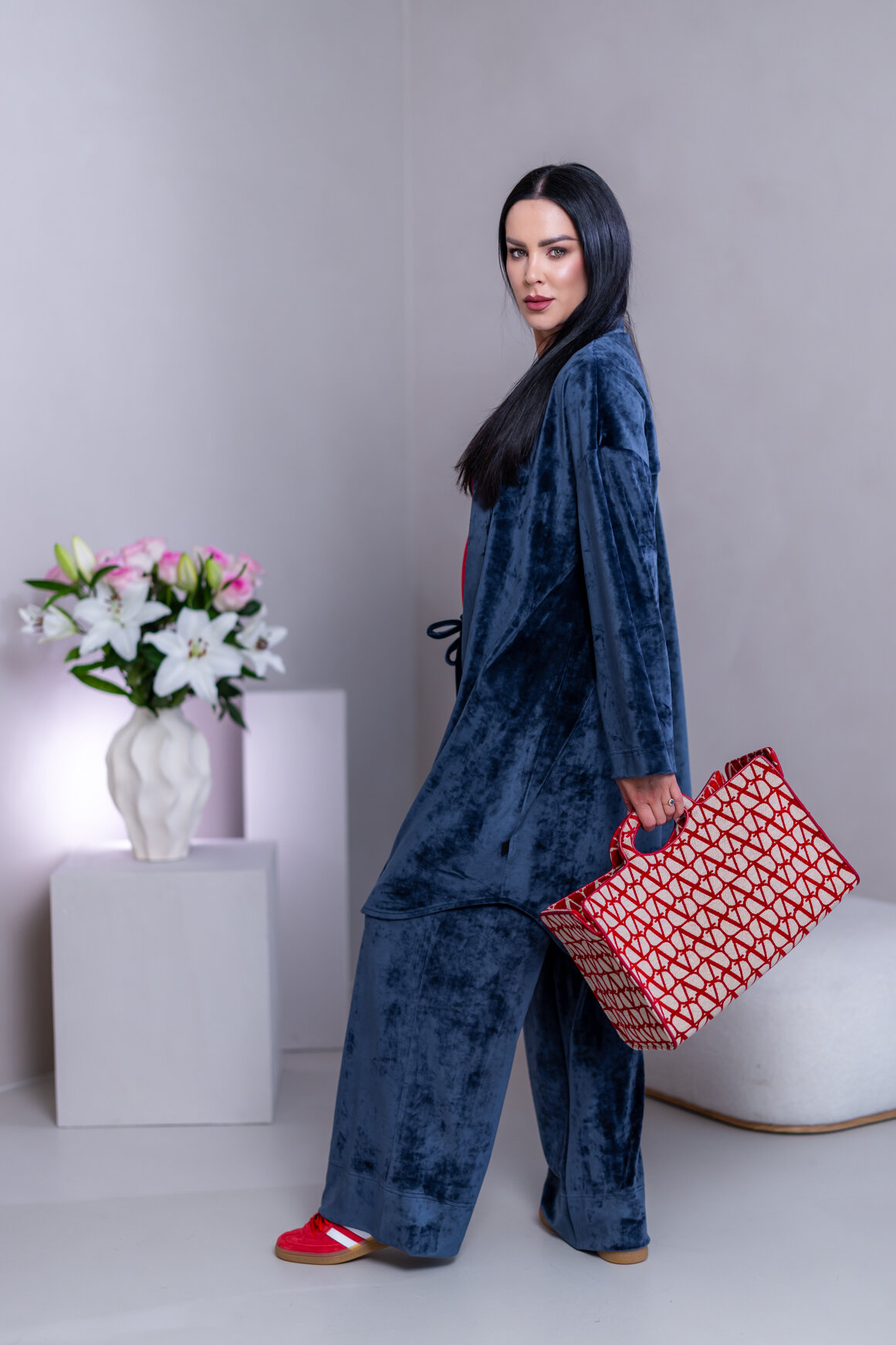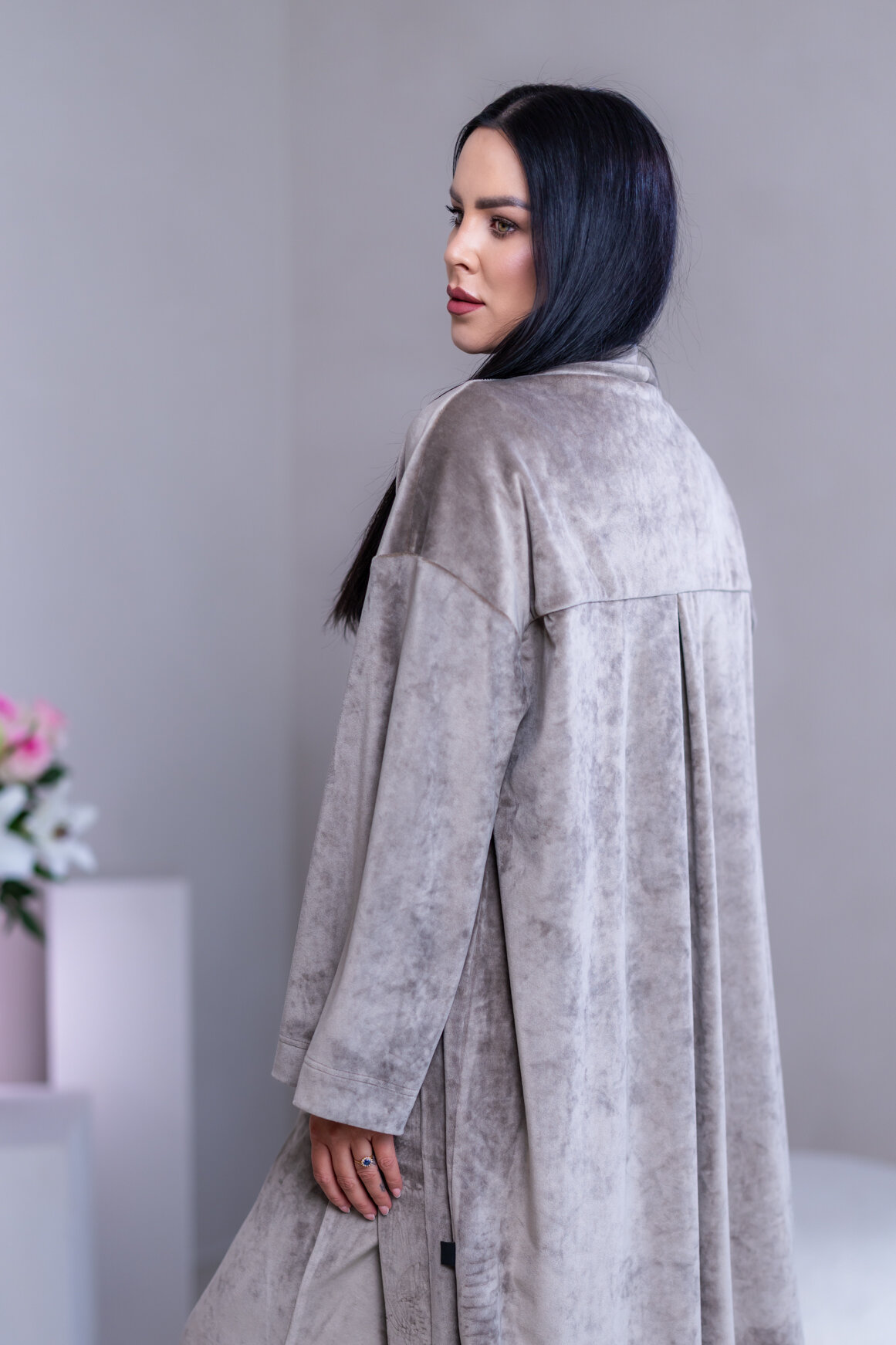Model má oblečenú veľkosť: S/M - 170. Miery modelky : 91-76-99, výška postavy 174 cm.