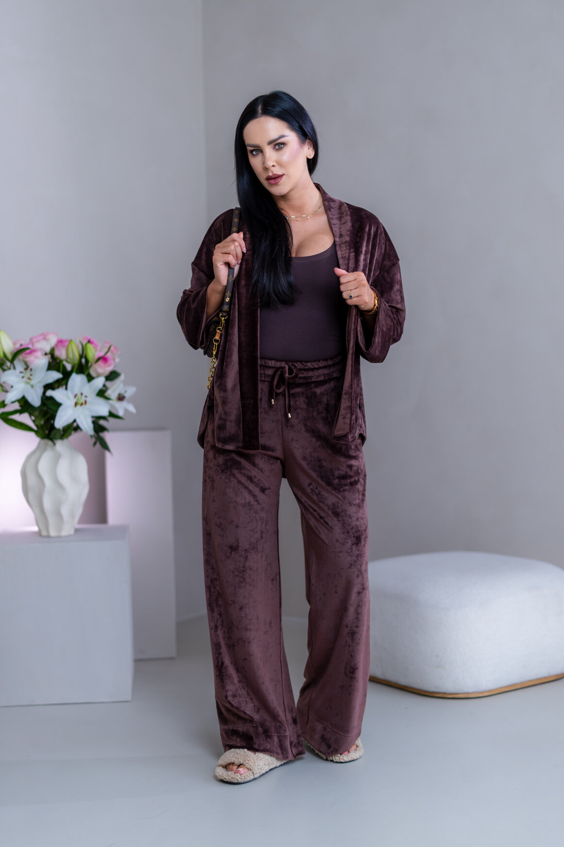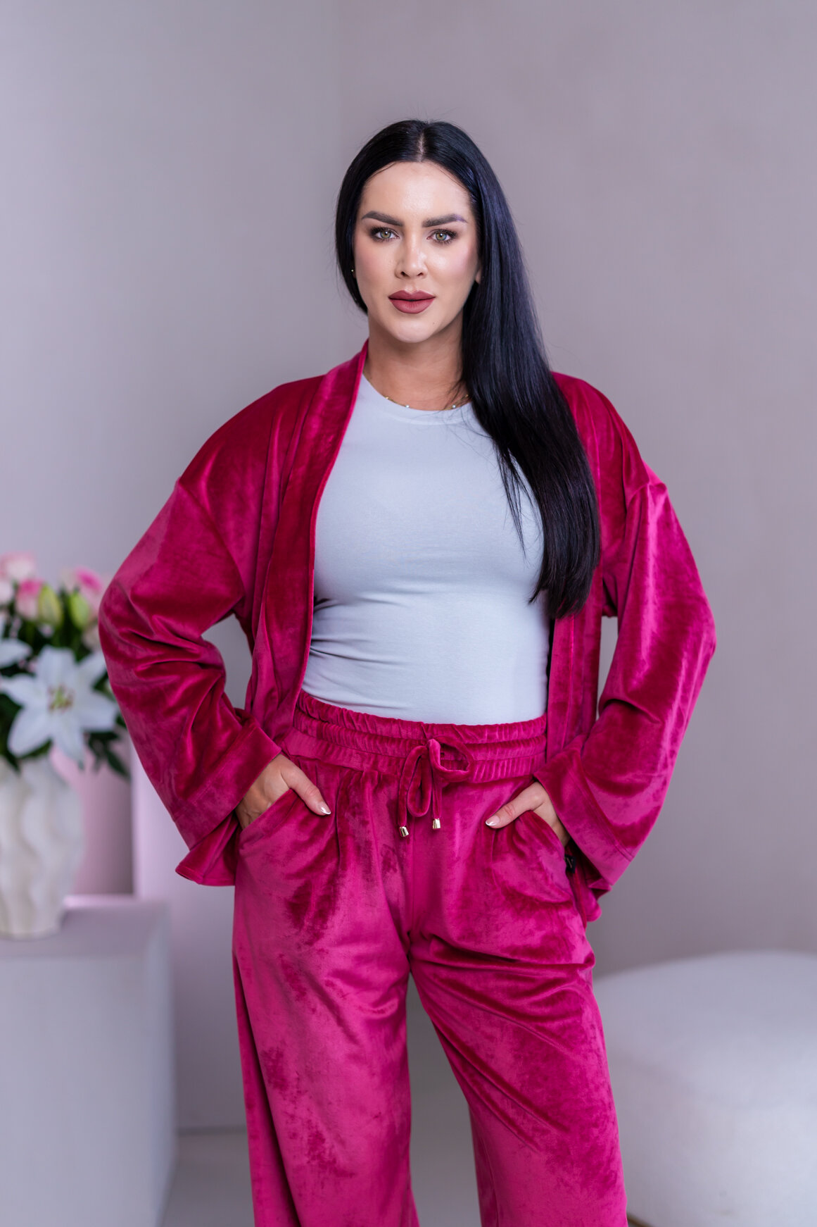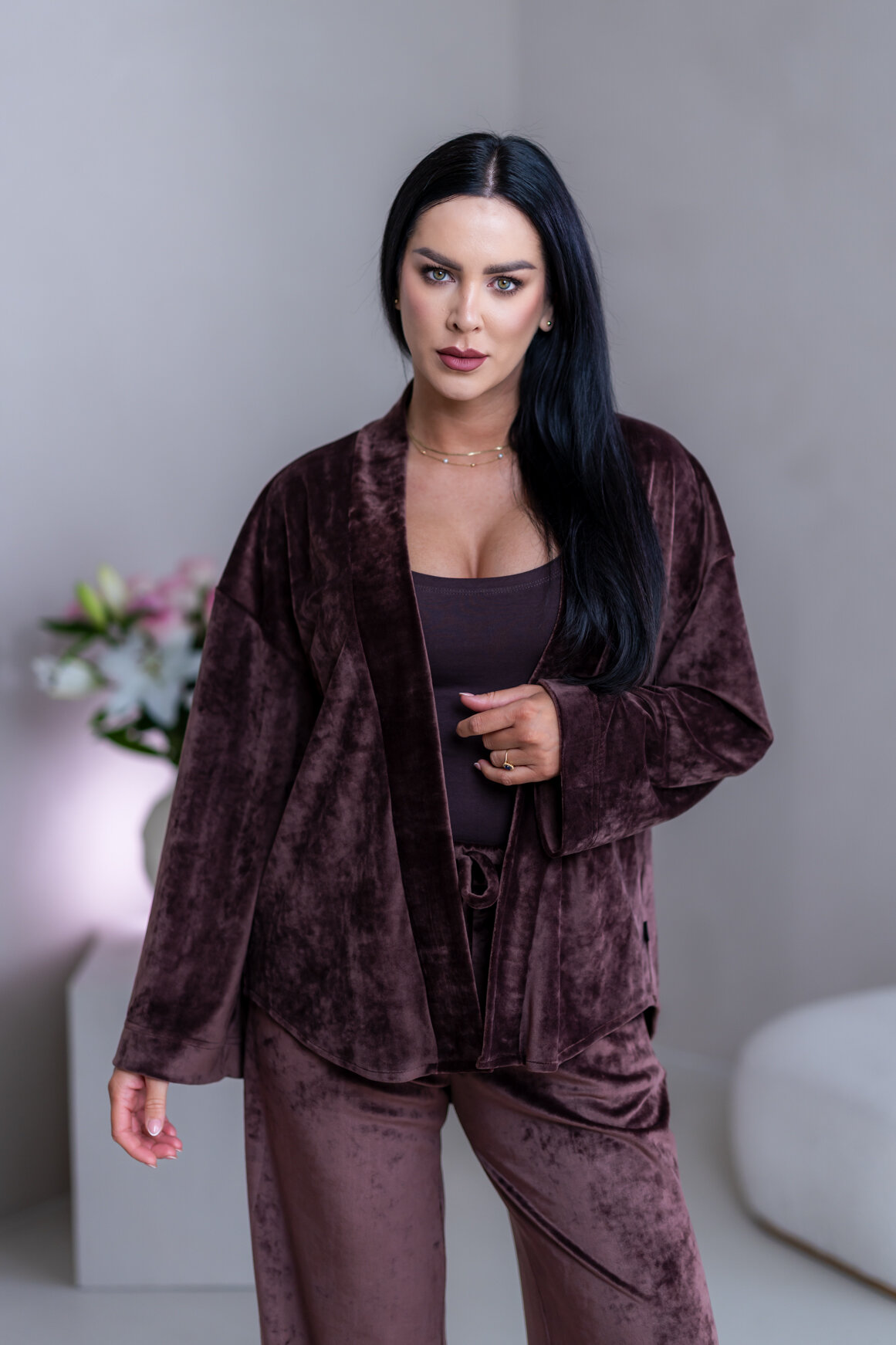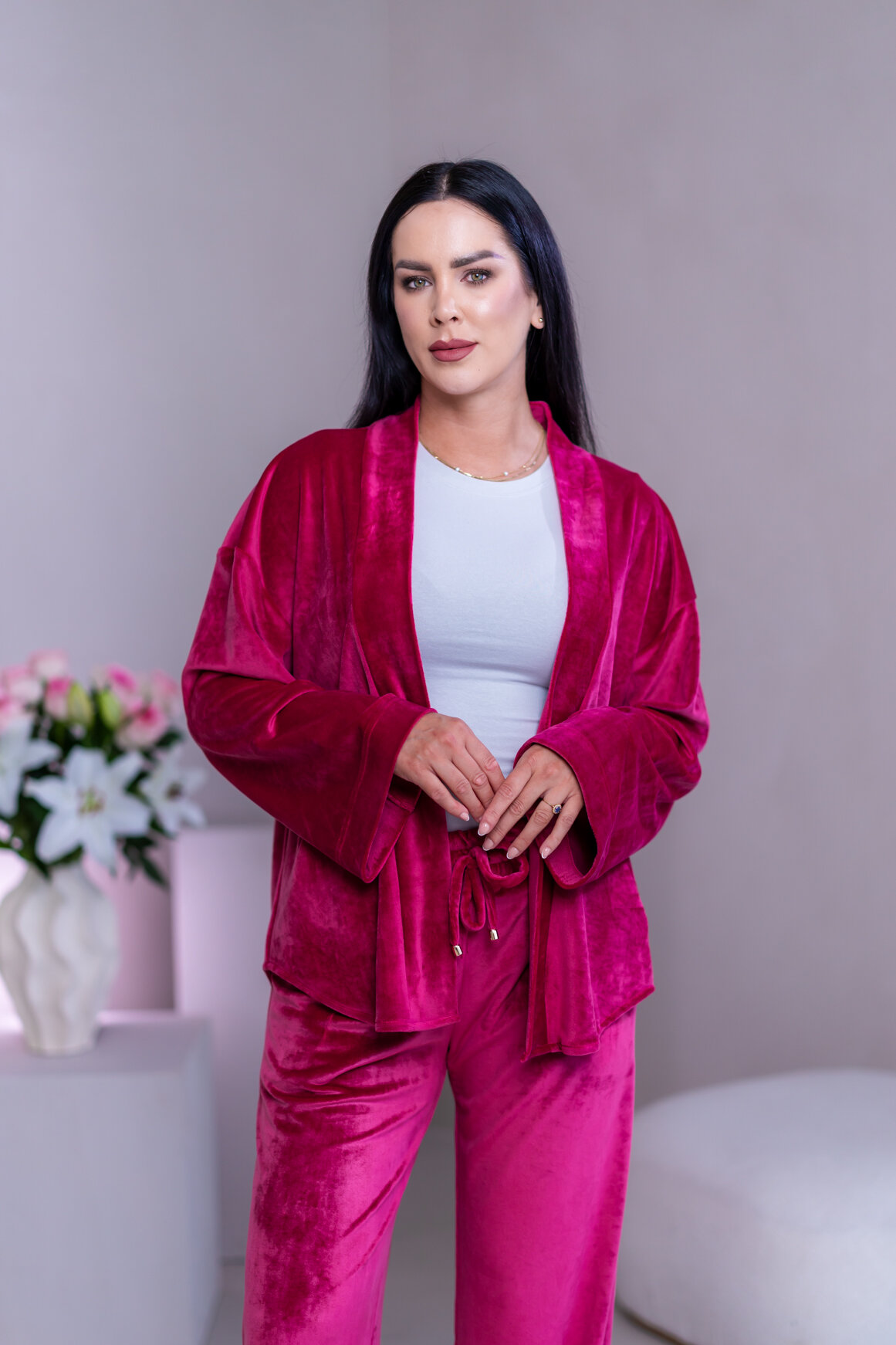 Model má oblečenú veľkosť: S/M - 170. Miery modelky : 91-76-99, výška postavy 174 cm.