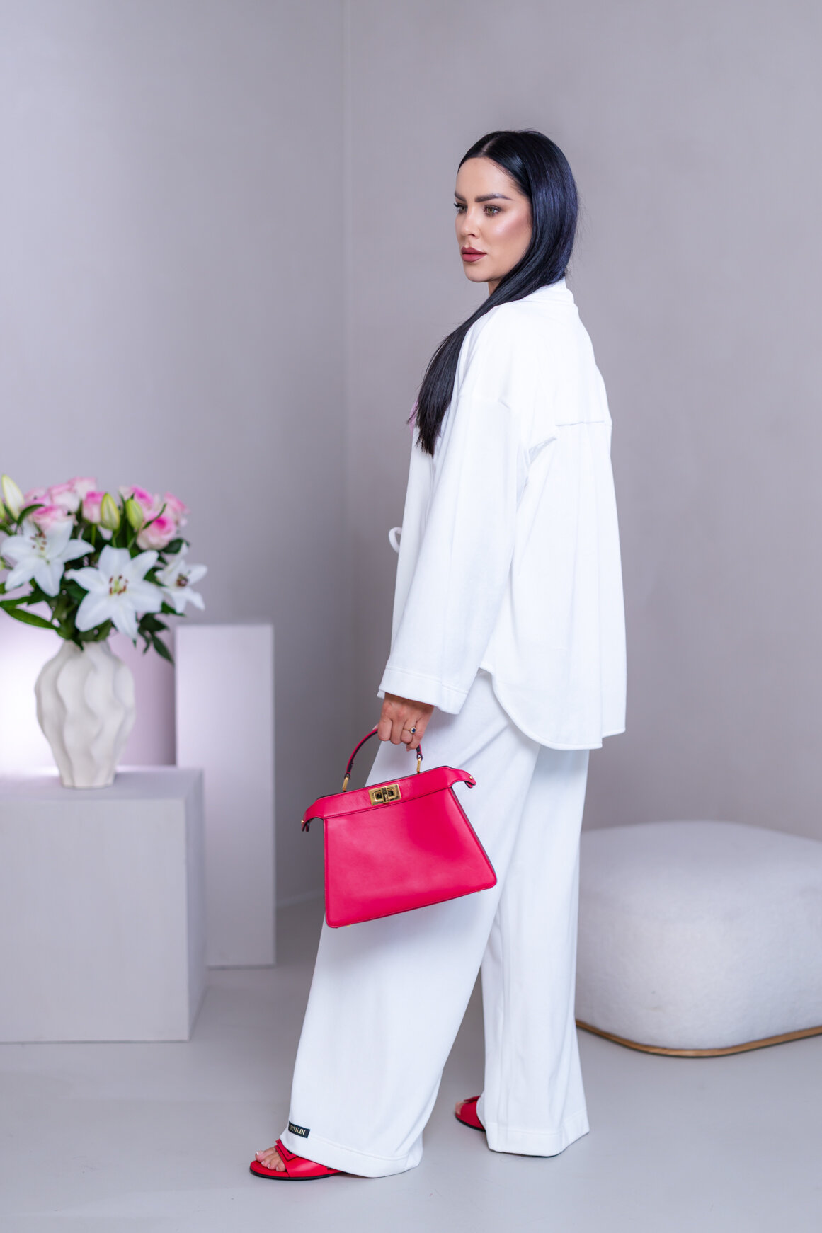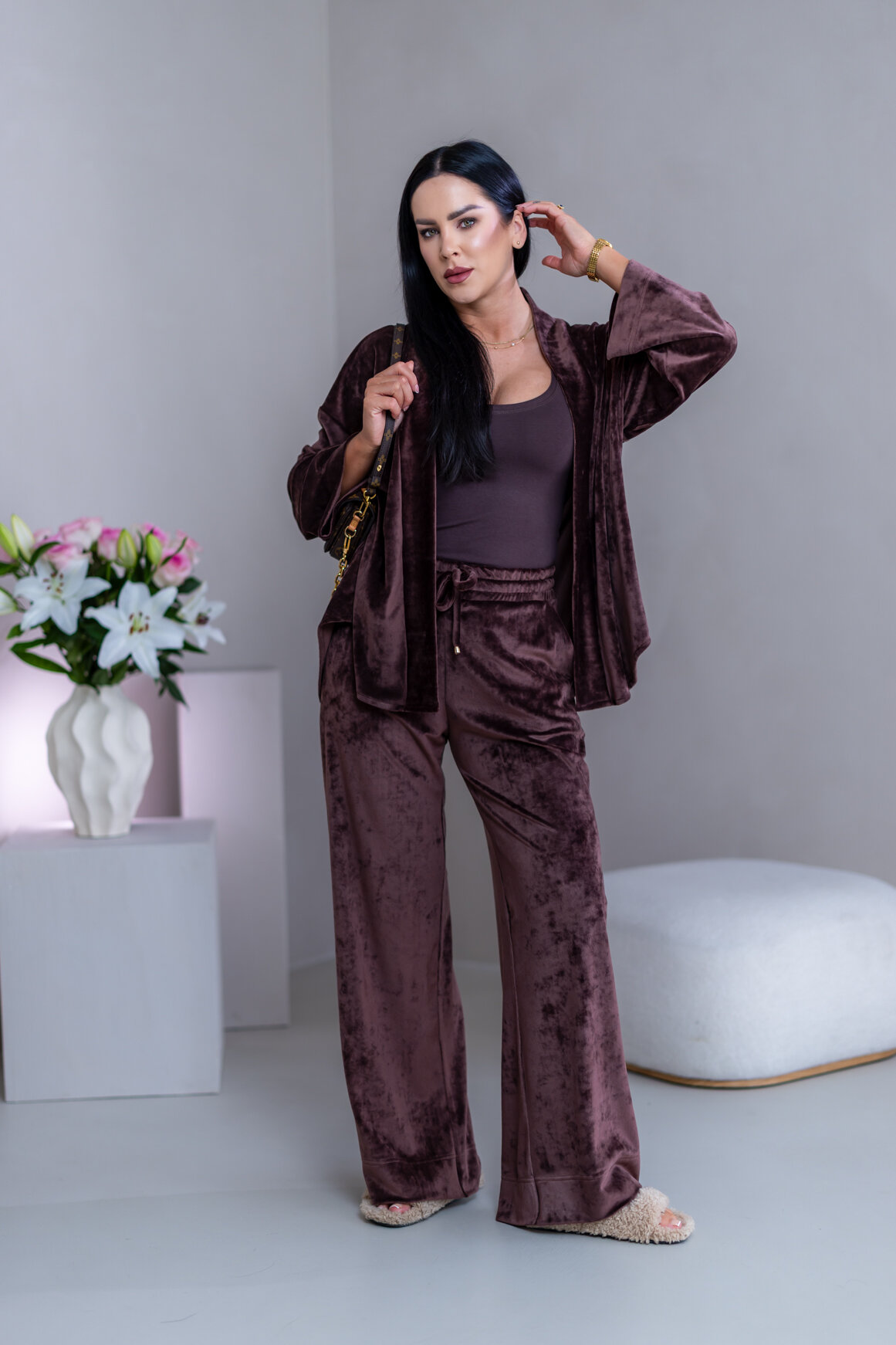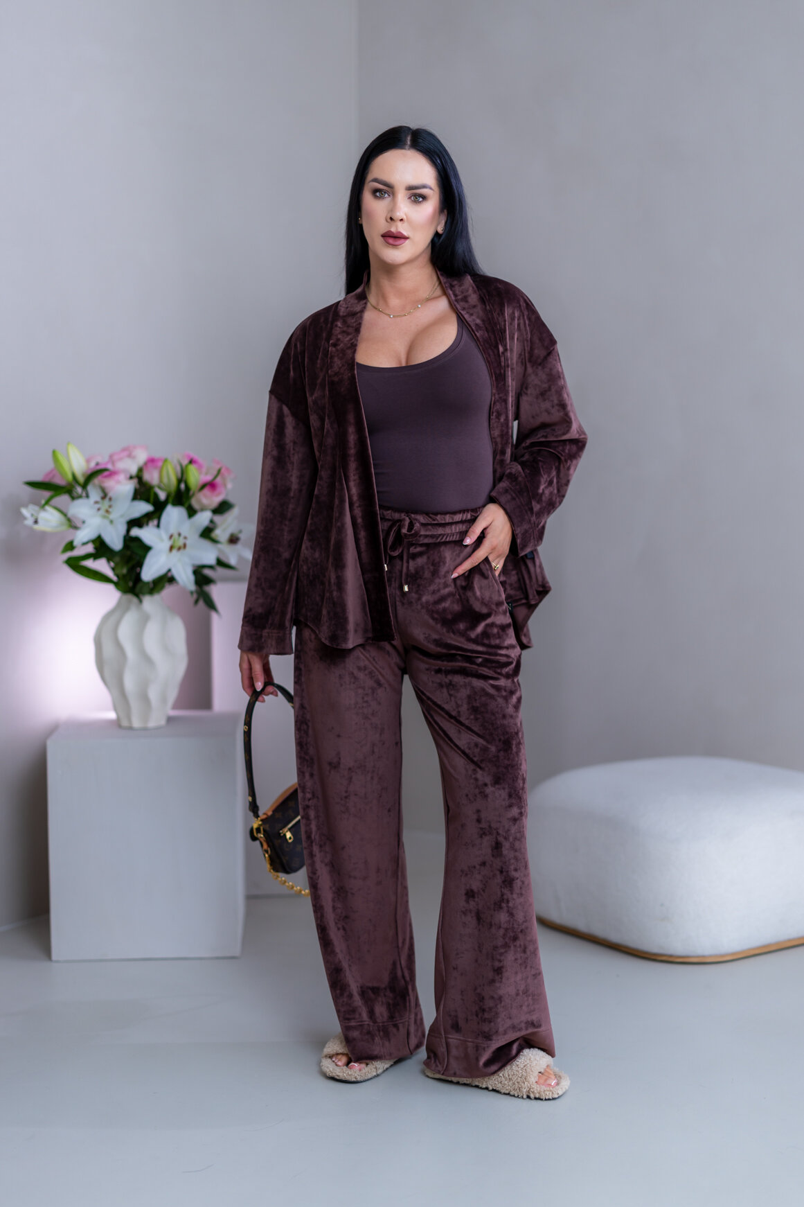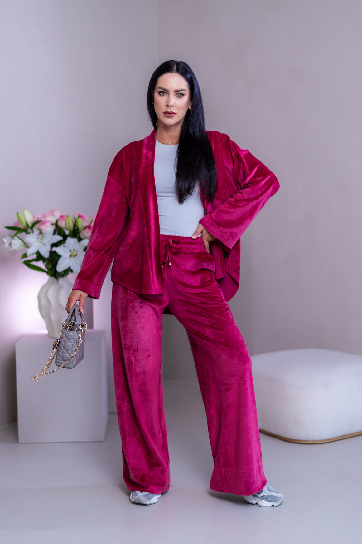 Model má oblečenú veľkosť: S/M - 170. Miery modelky : 91-76-99, výška postavy 174 cm.