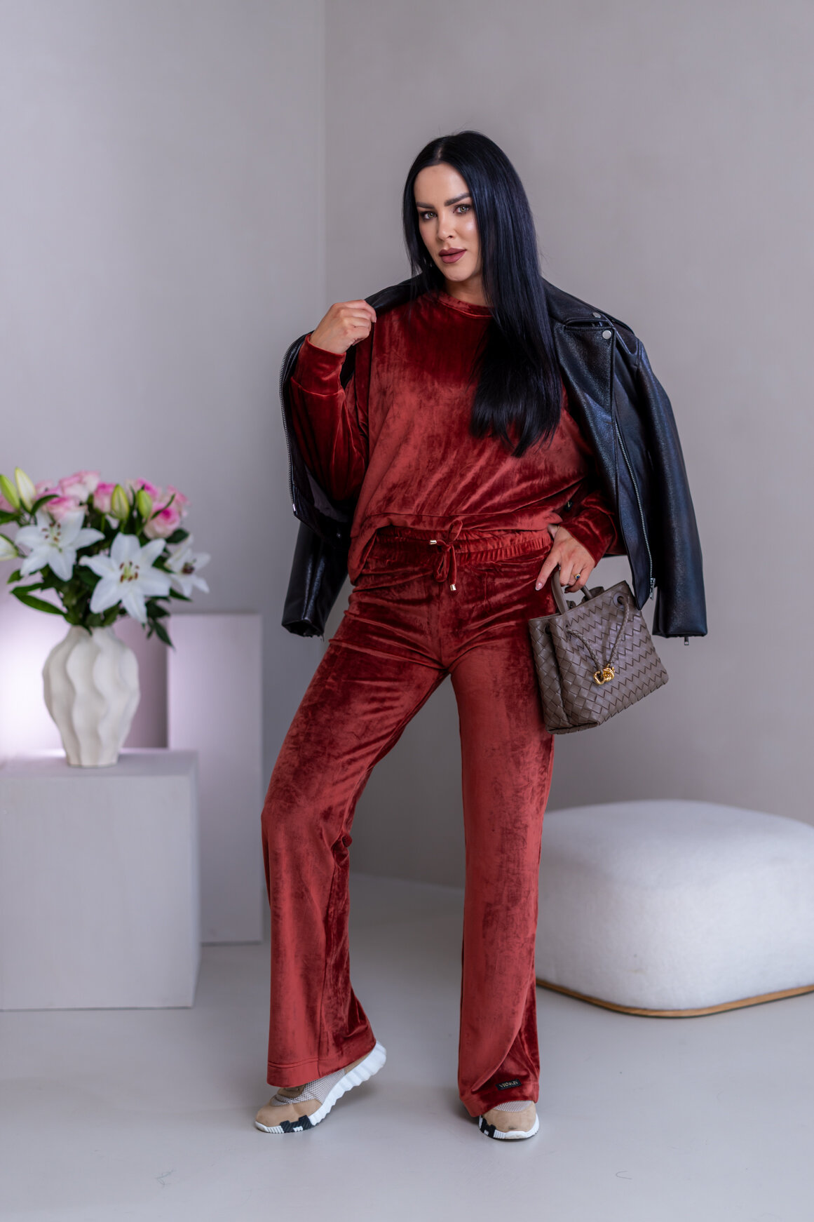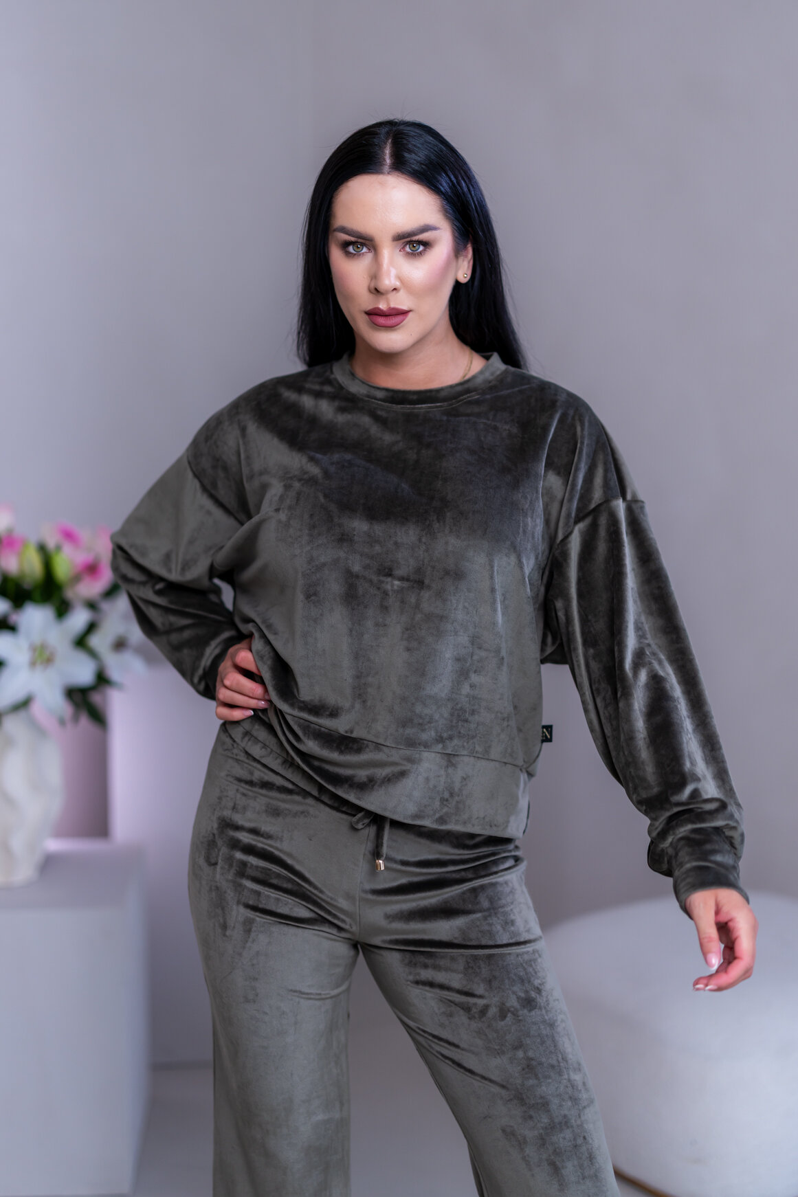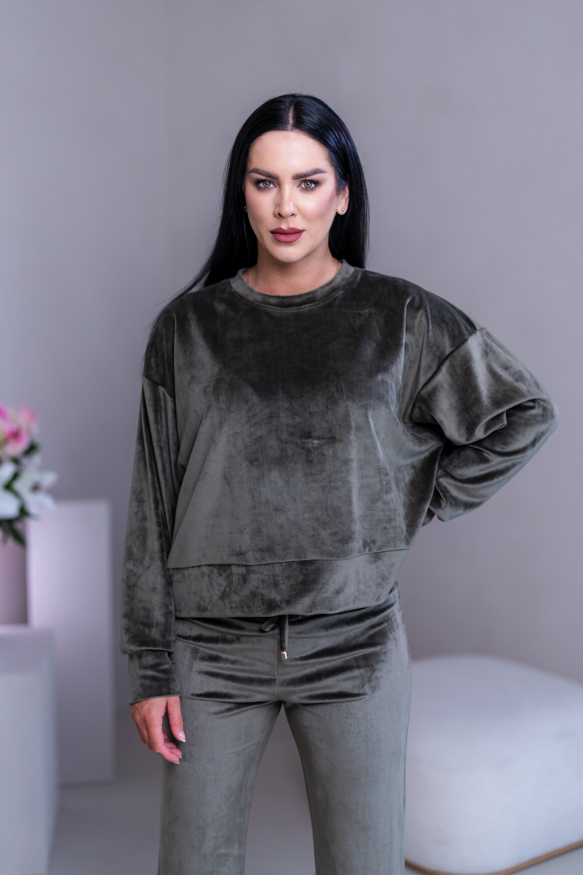 Model má oblečenú veľkosť: S/M - 170. Miery modelky : 91-76-99, výška postavy 174 cm.