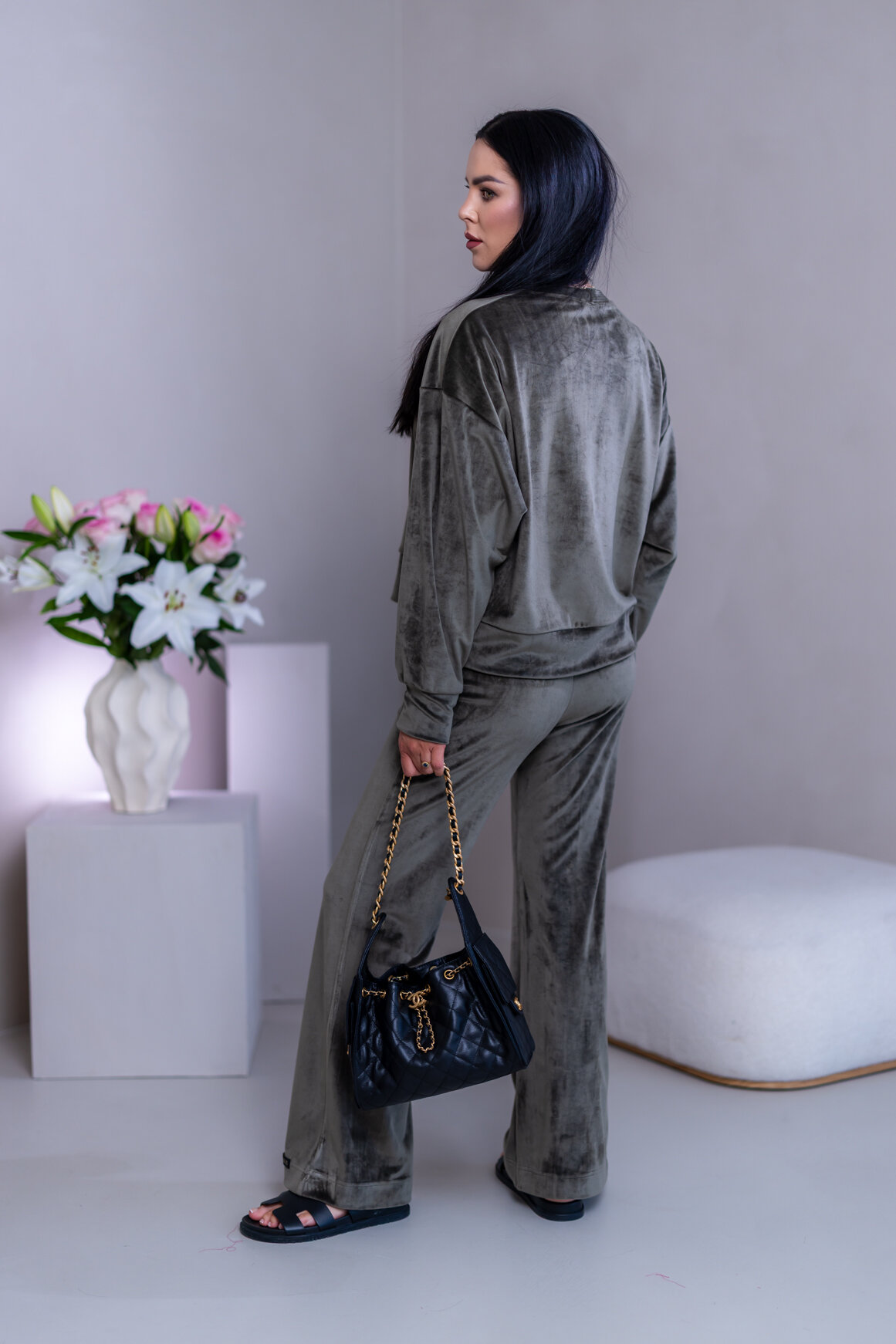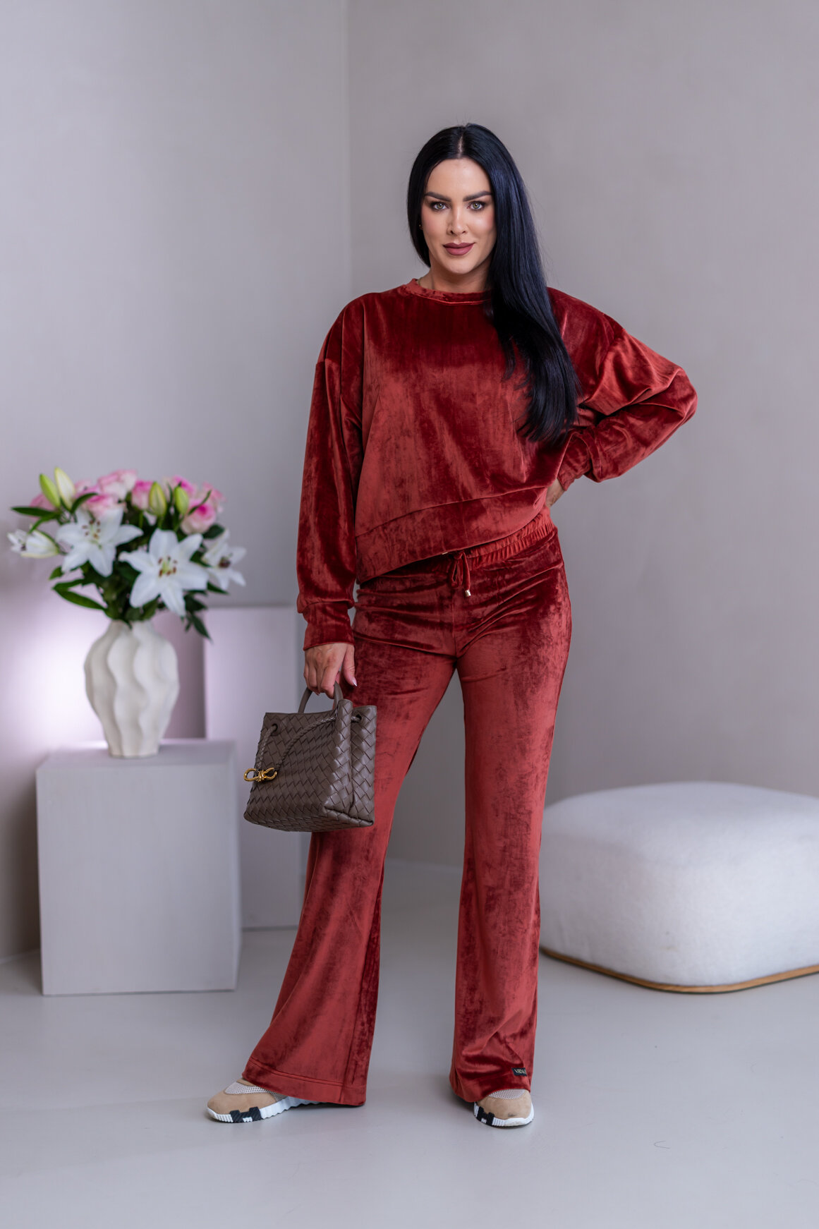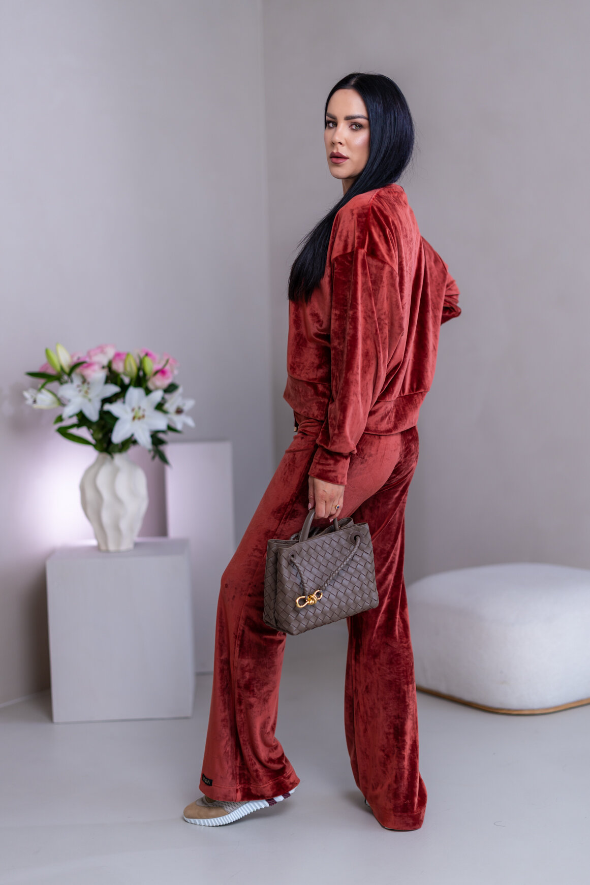 Model má oblečenú veľkosť: S/M - 170. Miery modelky : 91-76-99, výška postavy 174 cm.