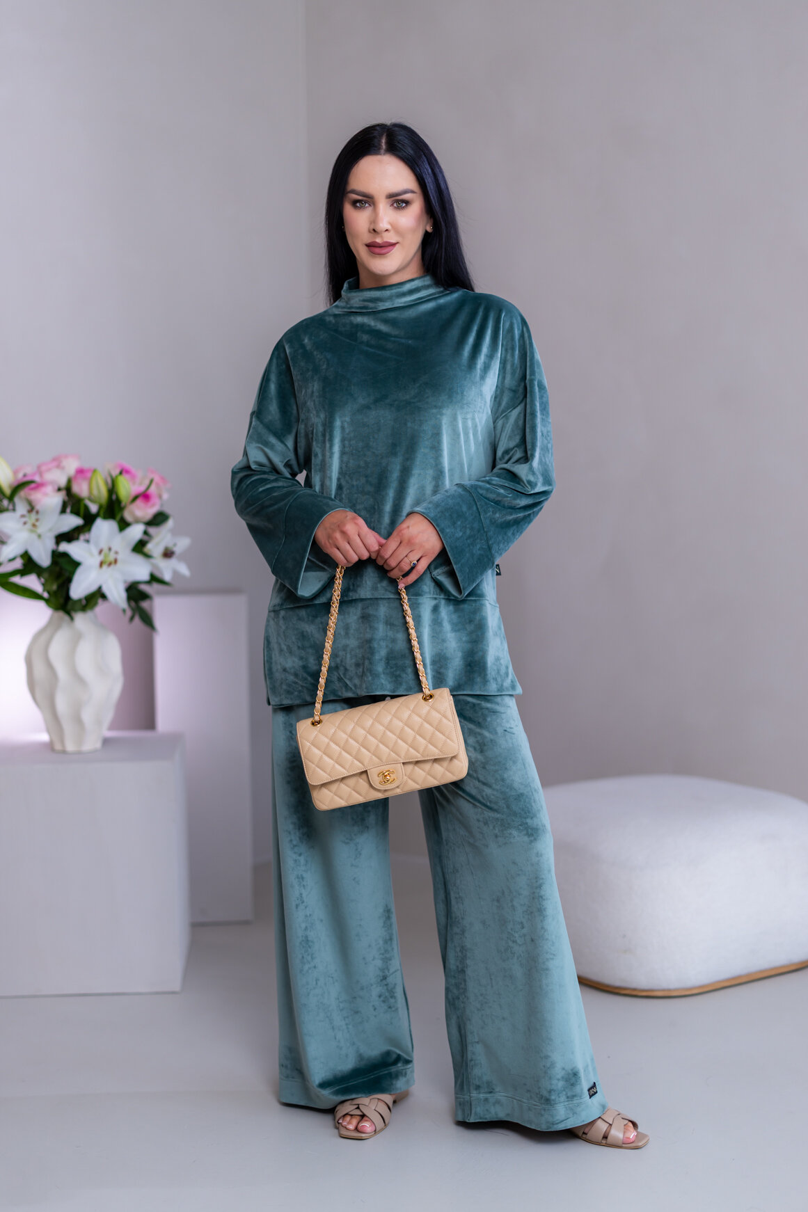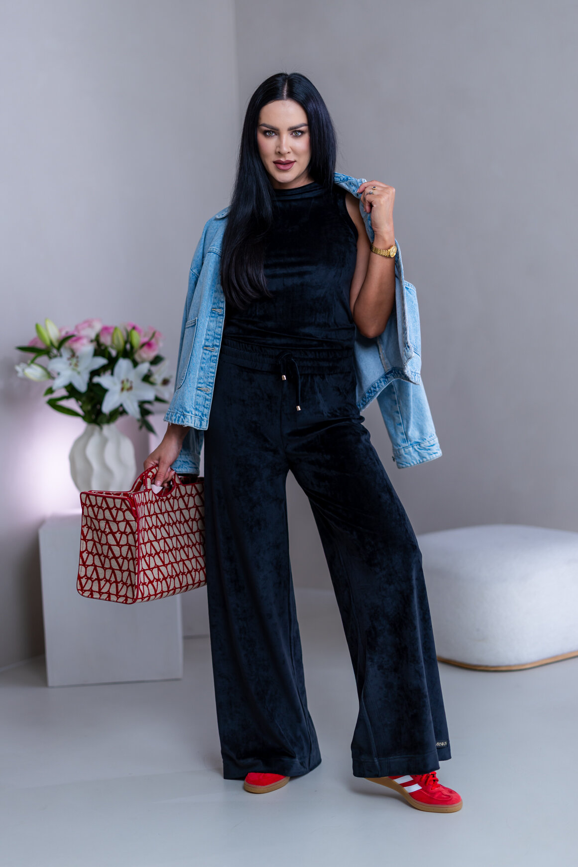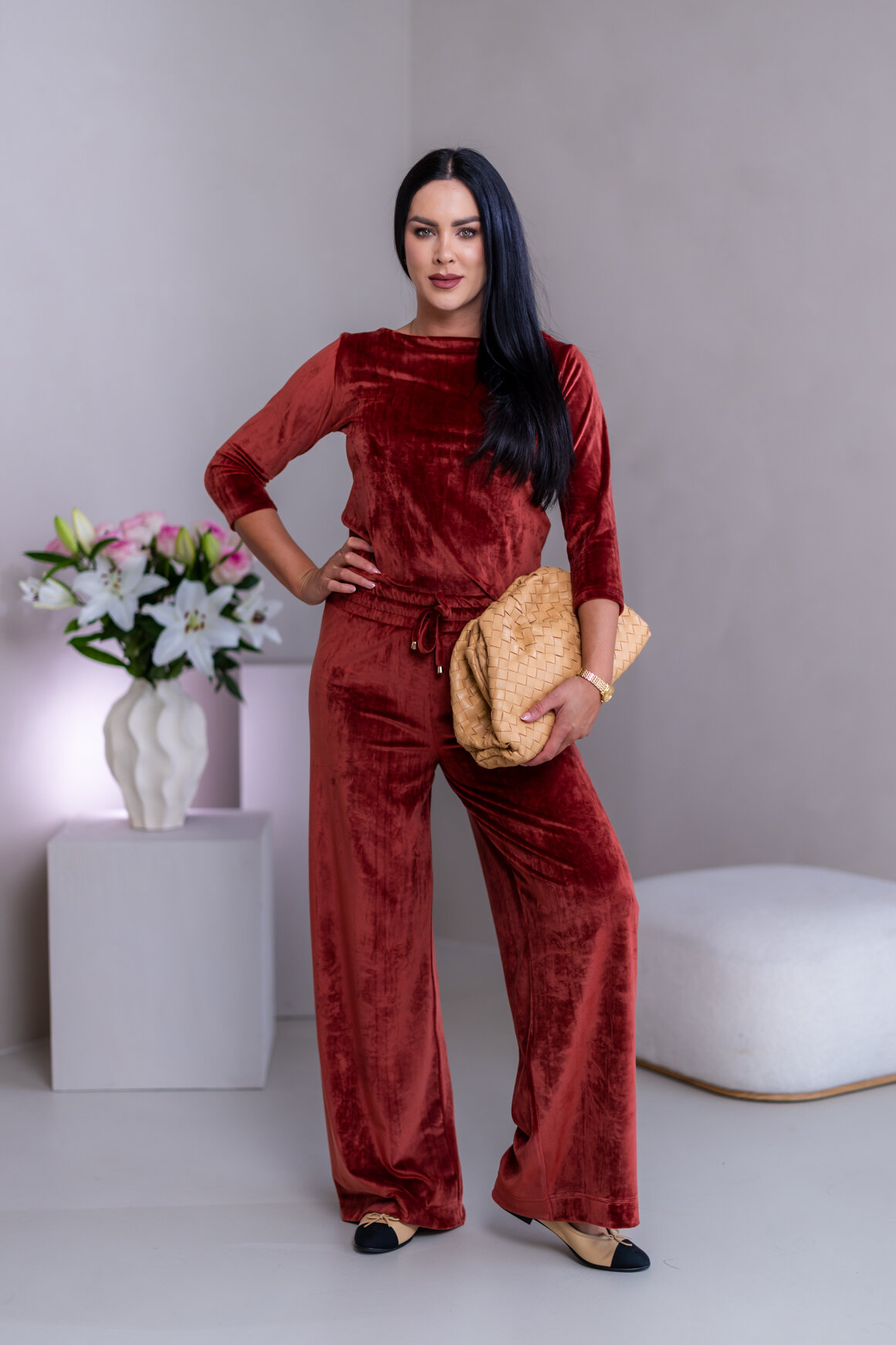 Model má oblečenú veľkosť: S/M - 170. Miery modelky : 91-76-99, výška postavy 174 cm.