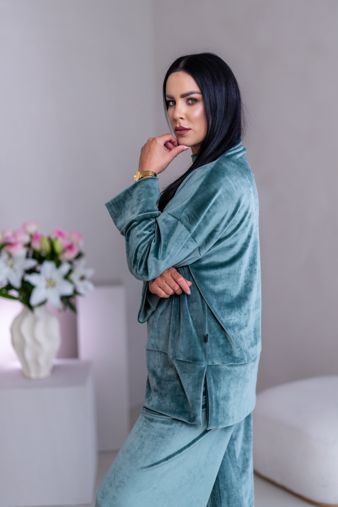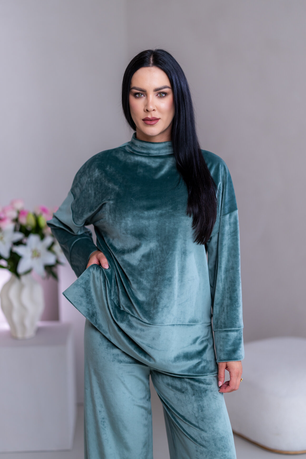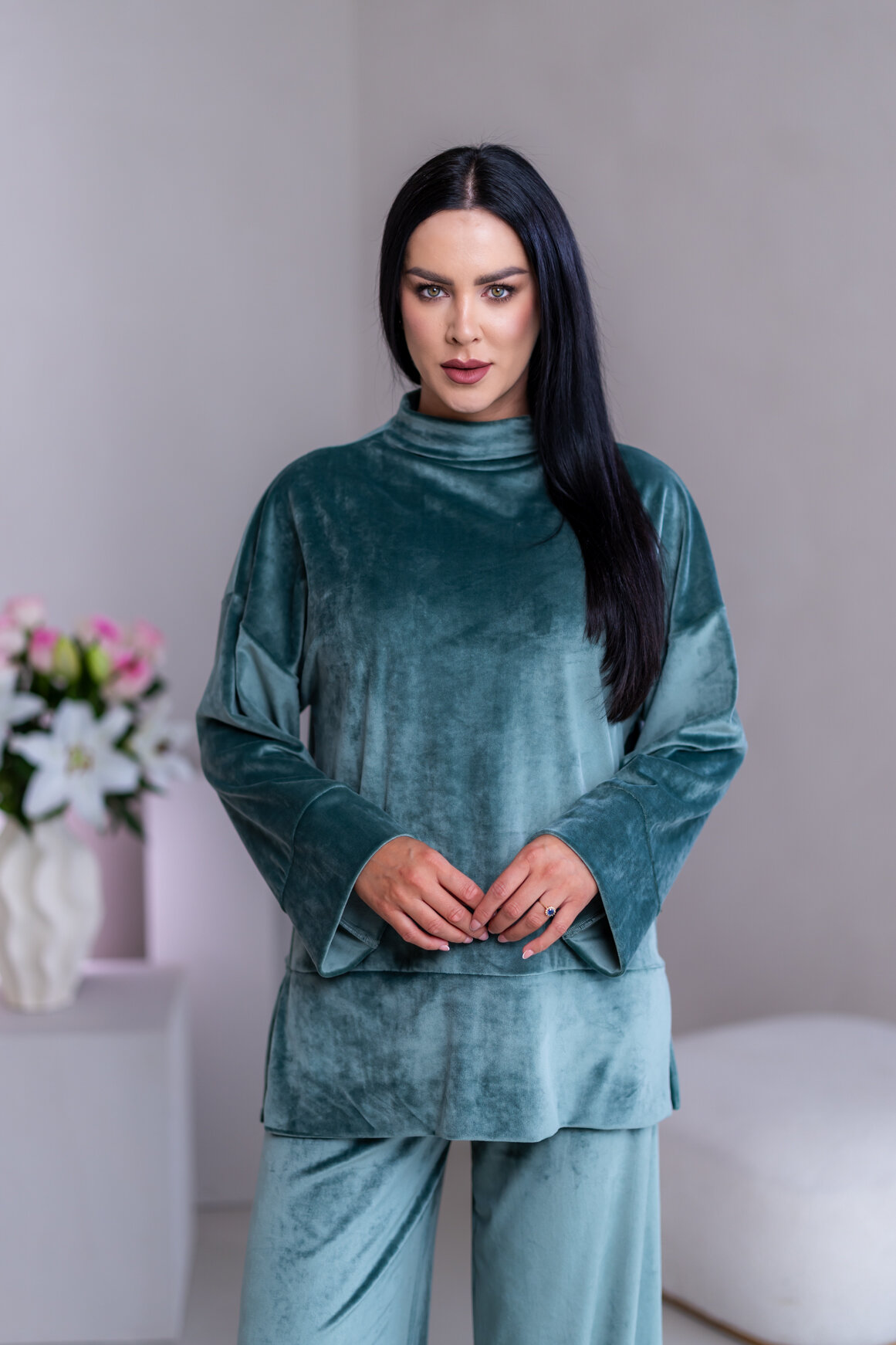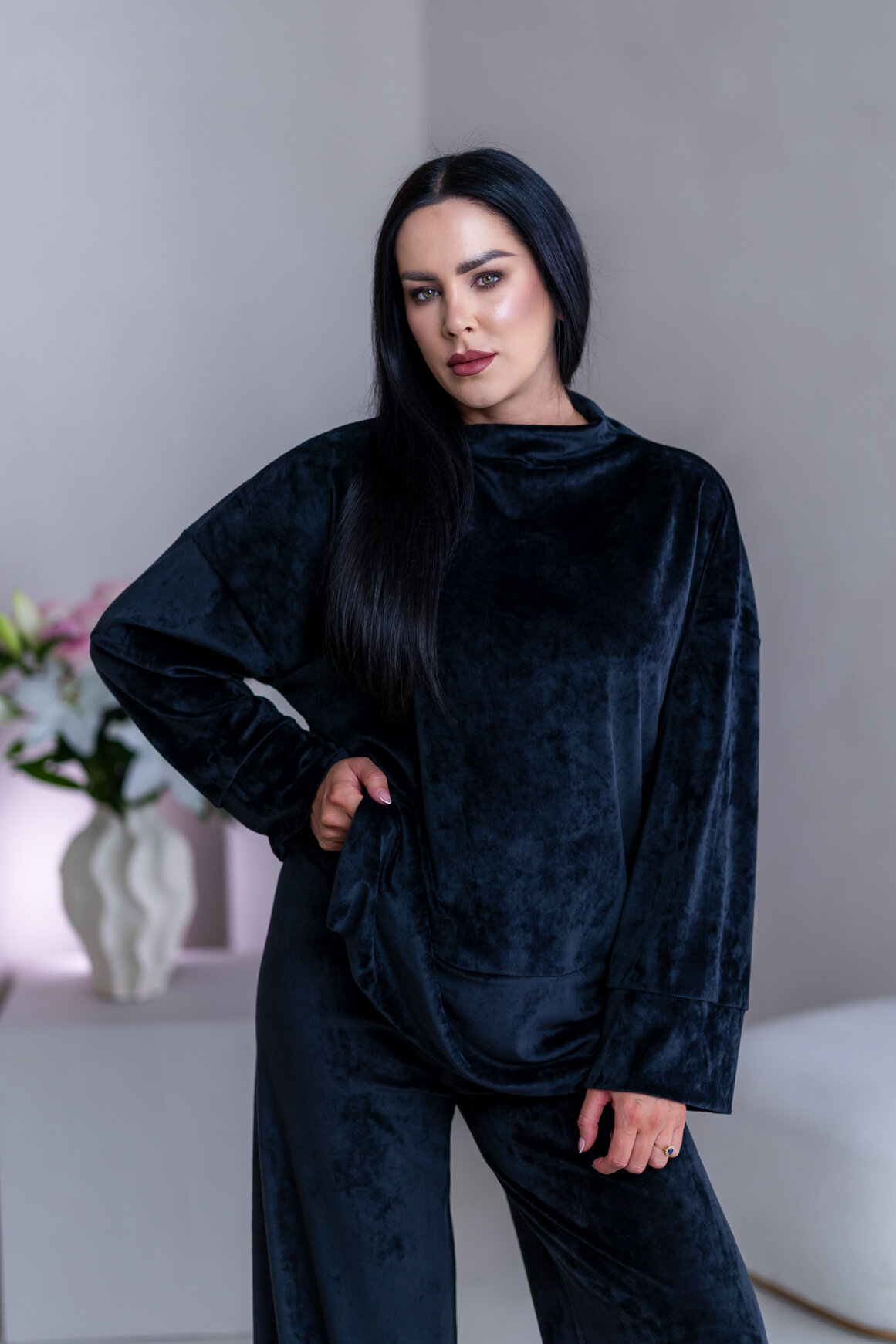 Model má oblečenú veľkosť: S/M - 170. Miery modelky : 91-76-99, výška postavy 174 cm.