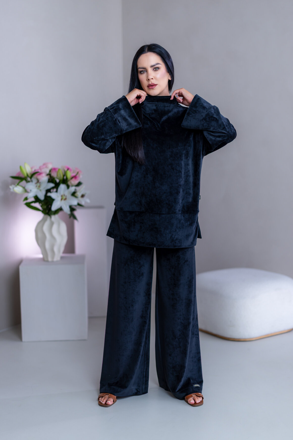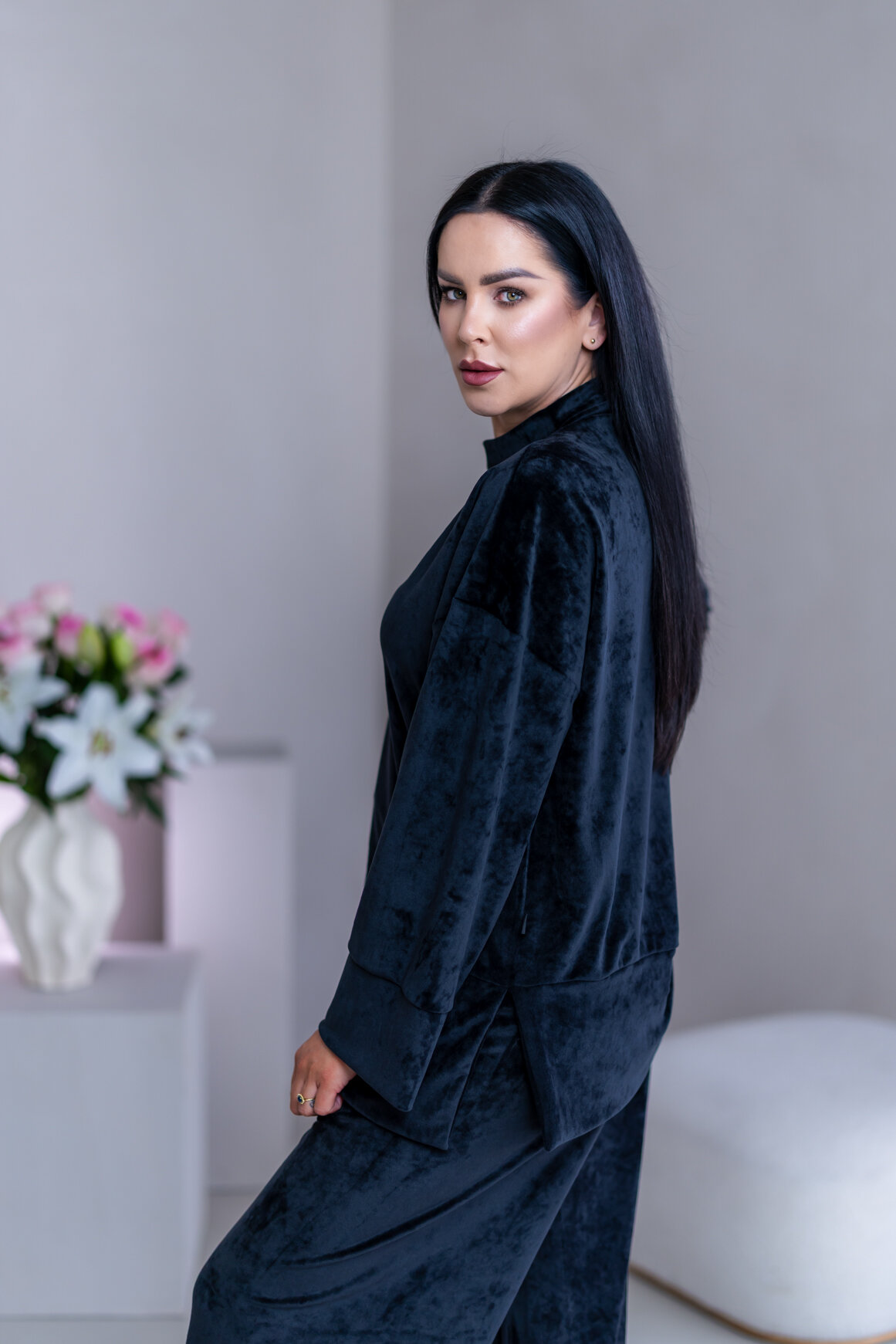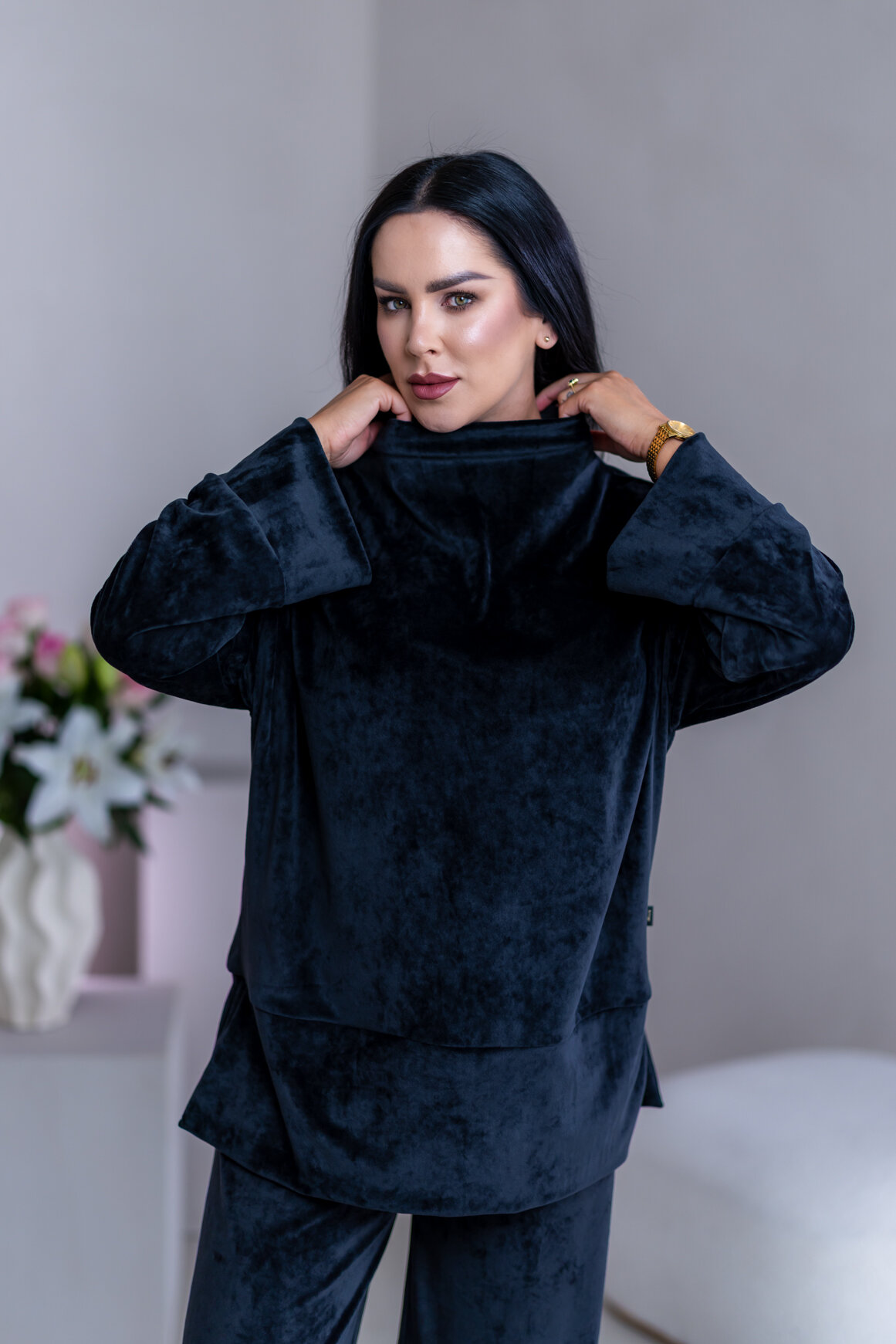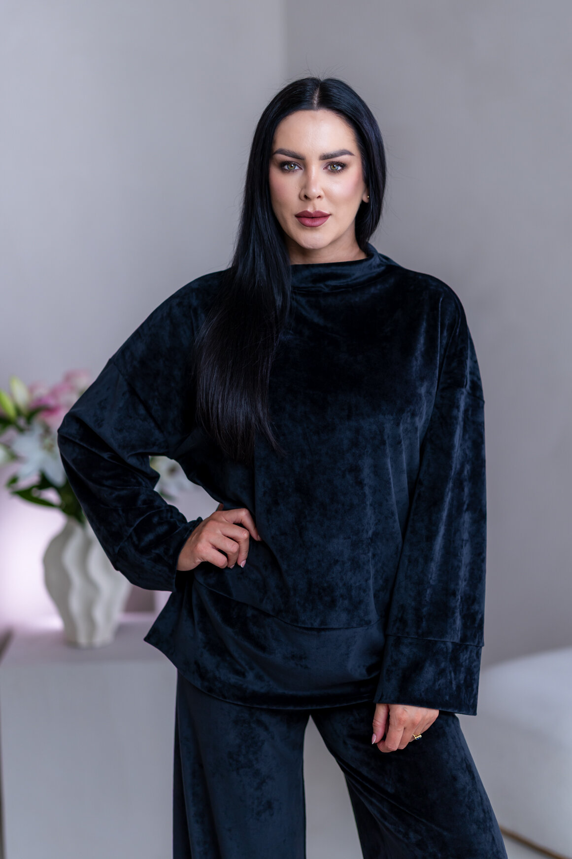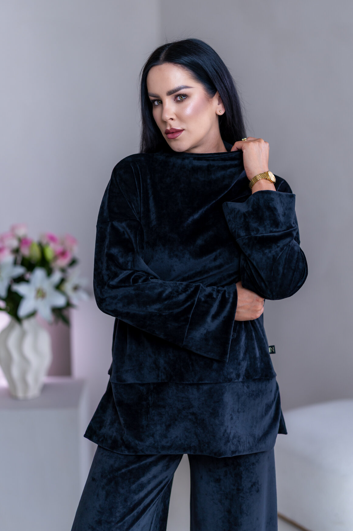 Model má oblečenú veľkosť: S/M - 170. Miery modelky : 91-76-99, výška postavy 174 cm.