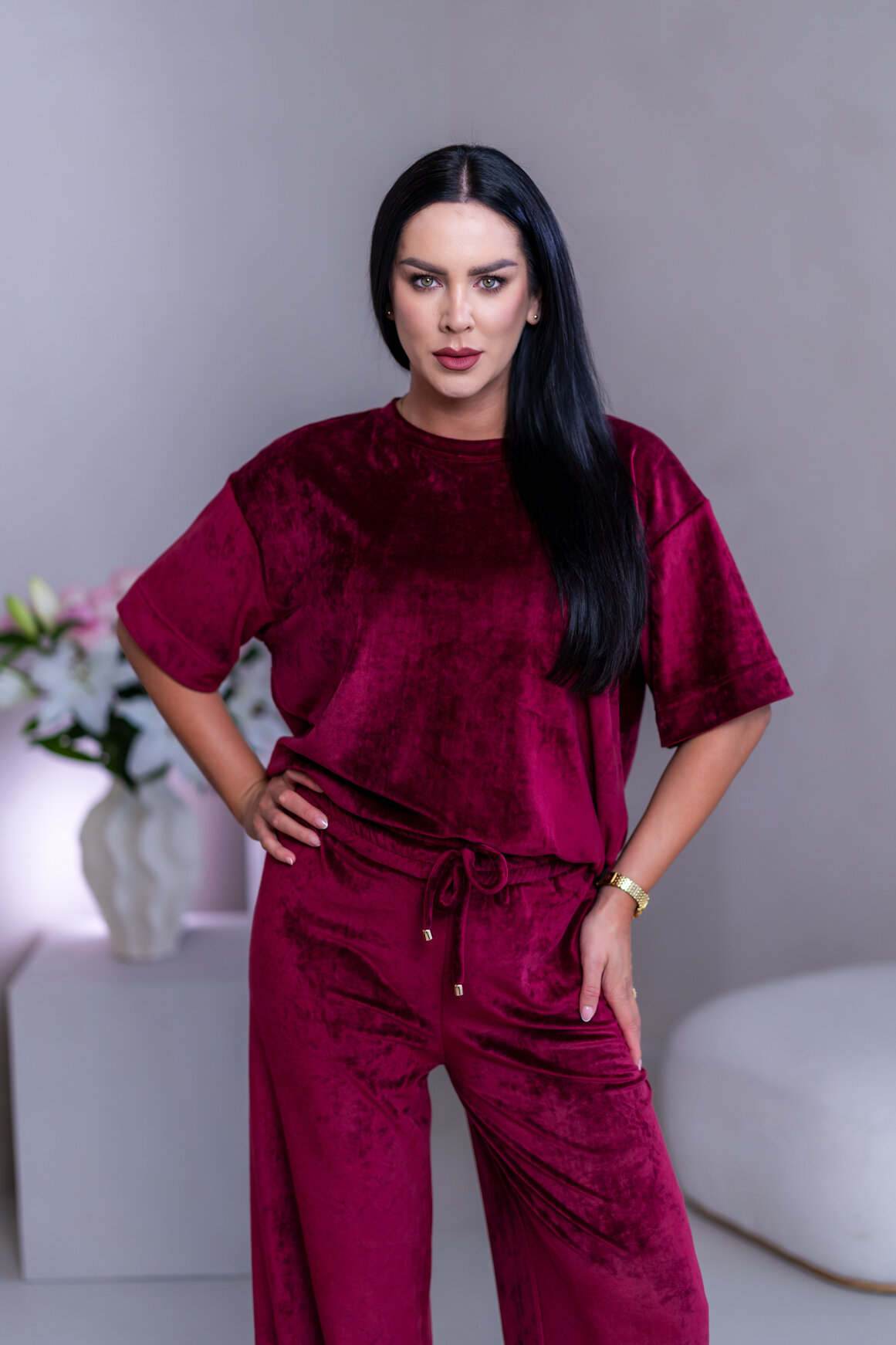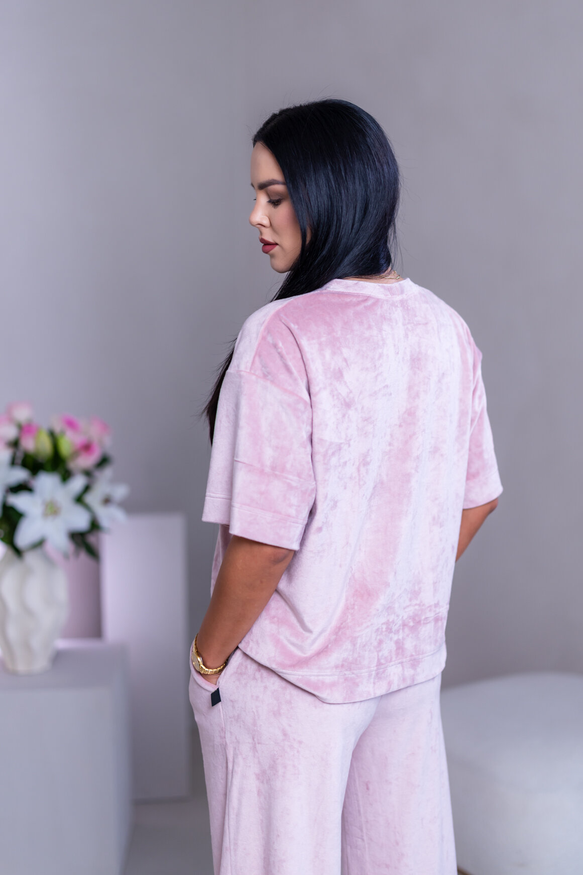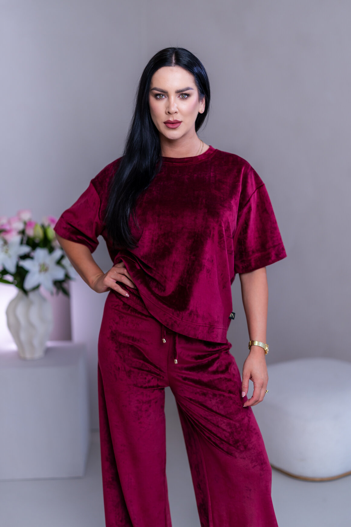 Model má oblečenú veľkosť: S/M - 170. Miery modelky : 91-76-99, výška postavy 174 cm.