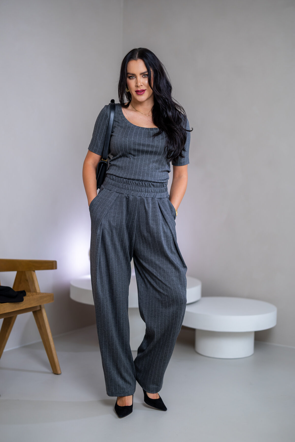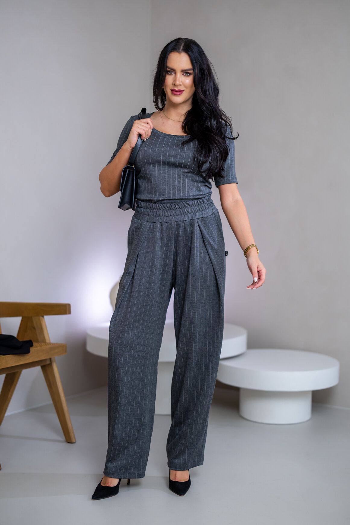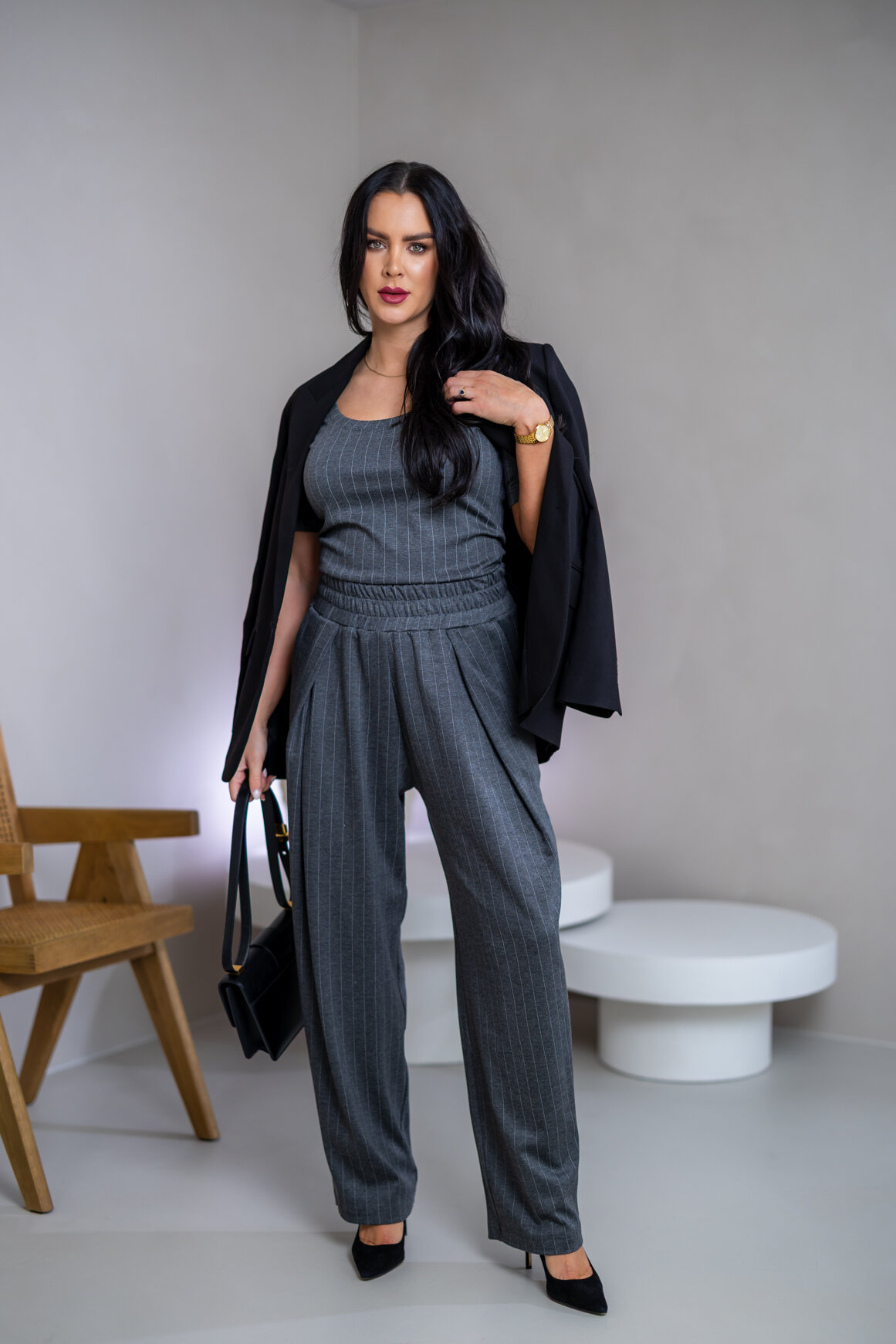 Model na ilustračnej fotke je vyrobený v odtieni BLACK, GRAY, BURGUNDY.
