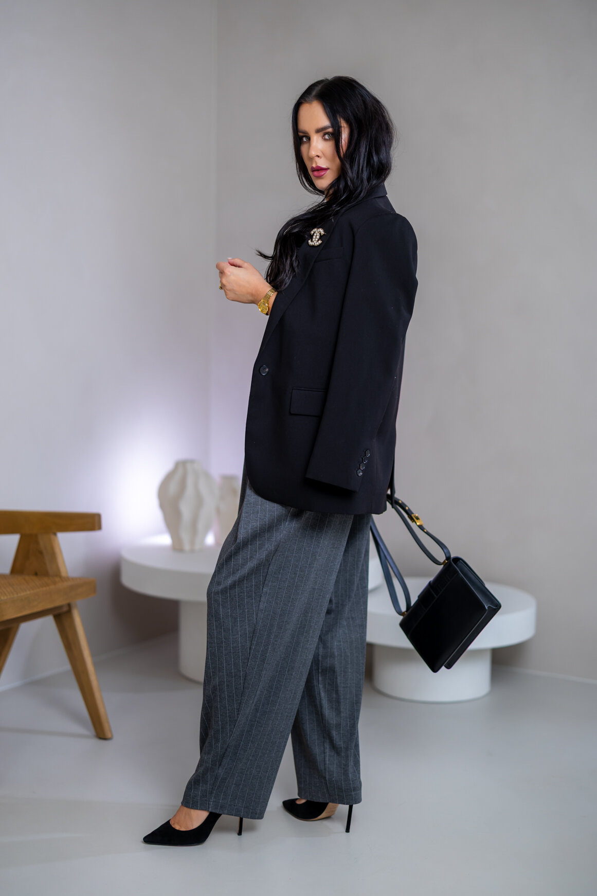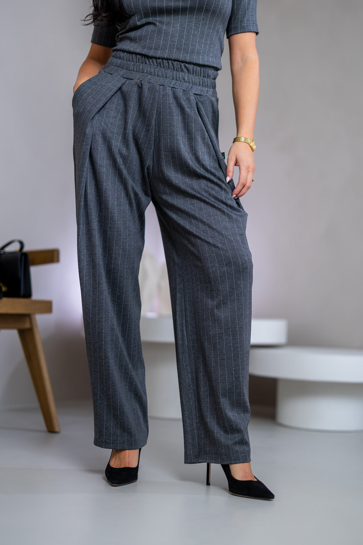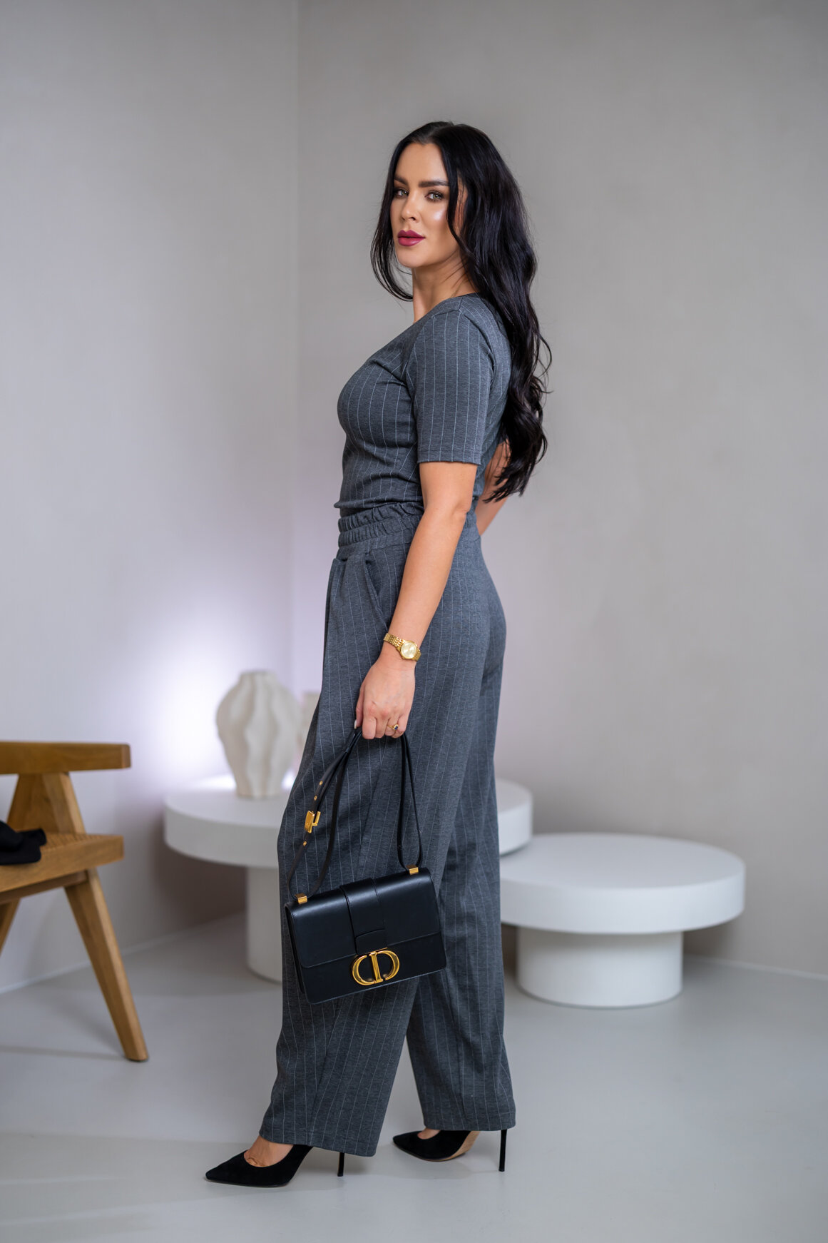 Model na ilustračnej fotke je vyrobený v odtieni BLACK, GRAY, BURGUNDY.