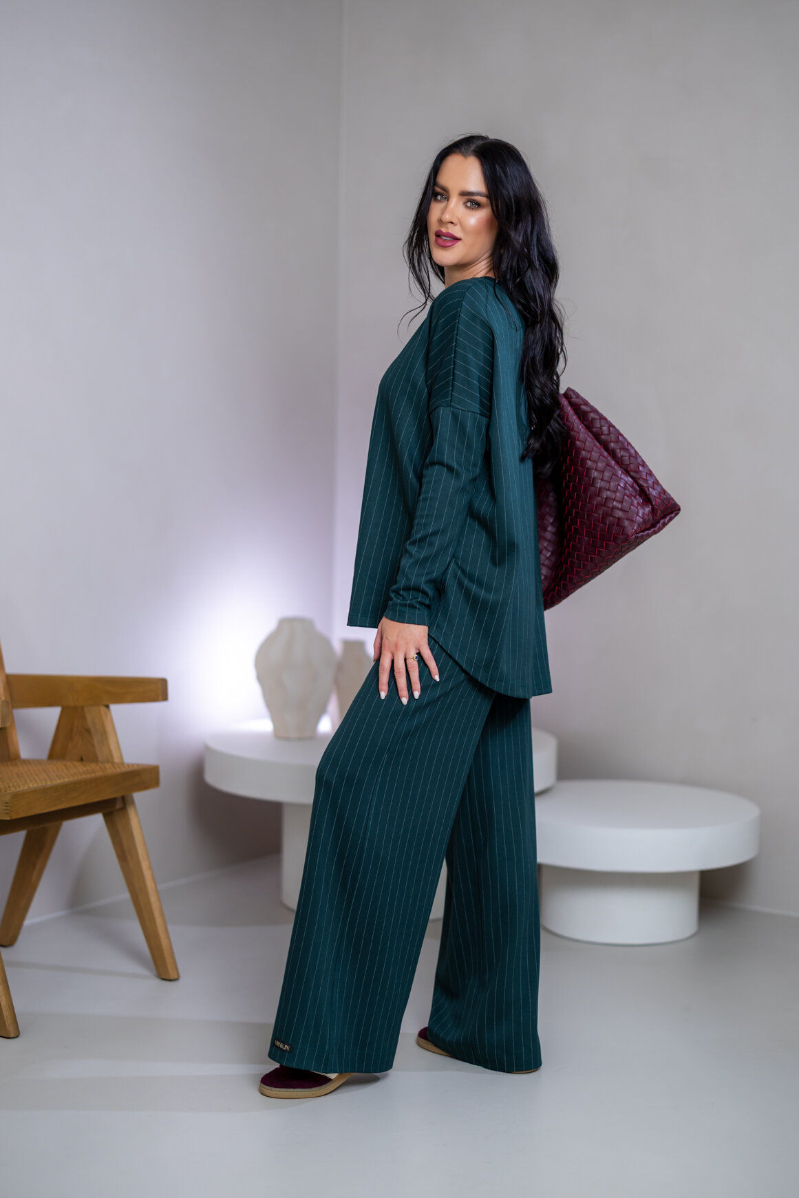 Zloženie: ÚPLET S JEMNÝM PRÚŽKOM: 70% viskóza, 25% polyamid, 5% elastan, 290 g/m2