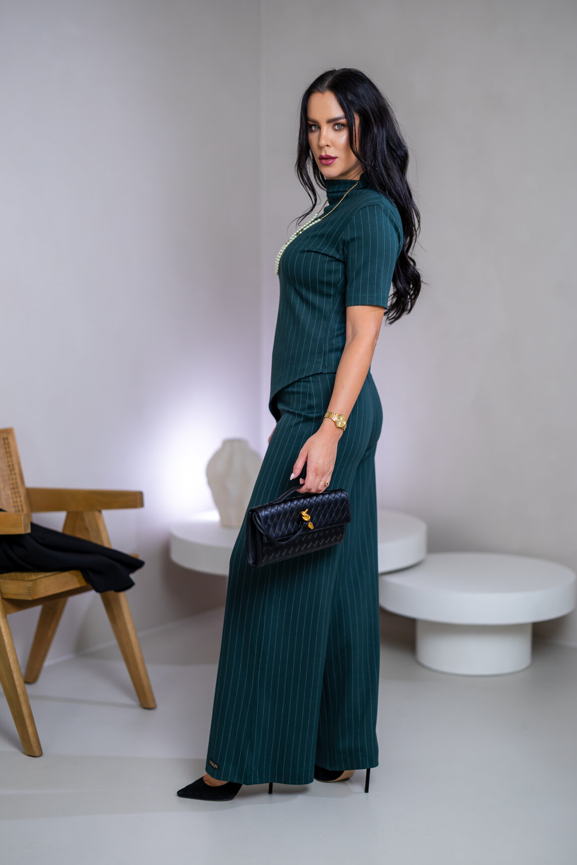 Model má oblečenú veľkosť: M - 170. Miery modelky : 91-76-99, výška postavy 174 cm.