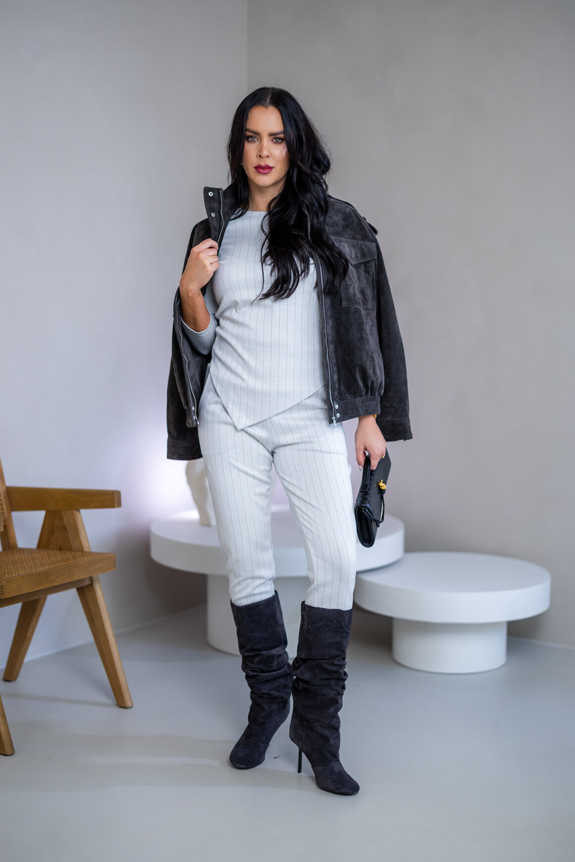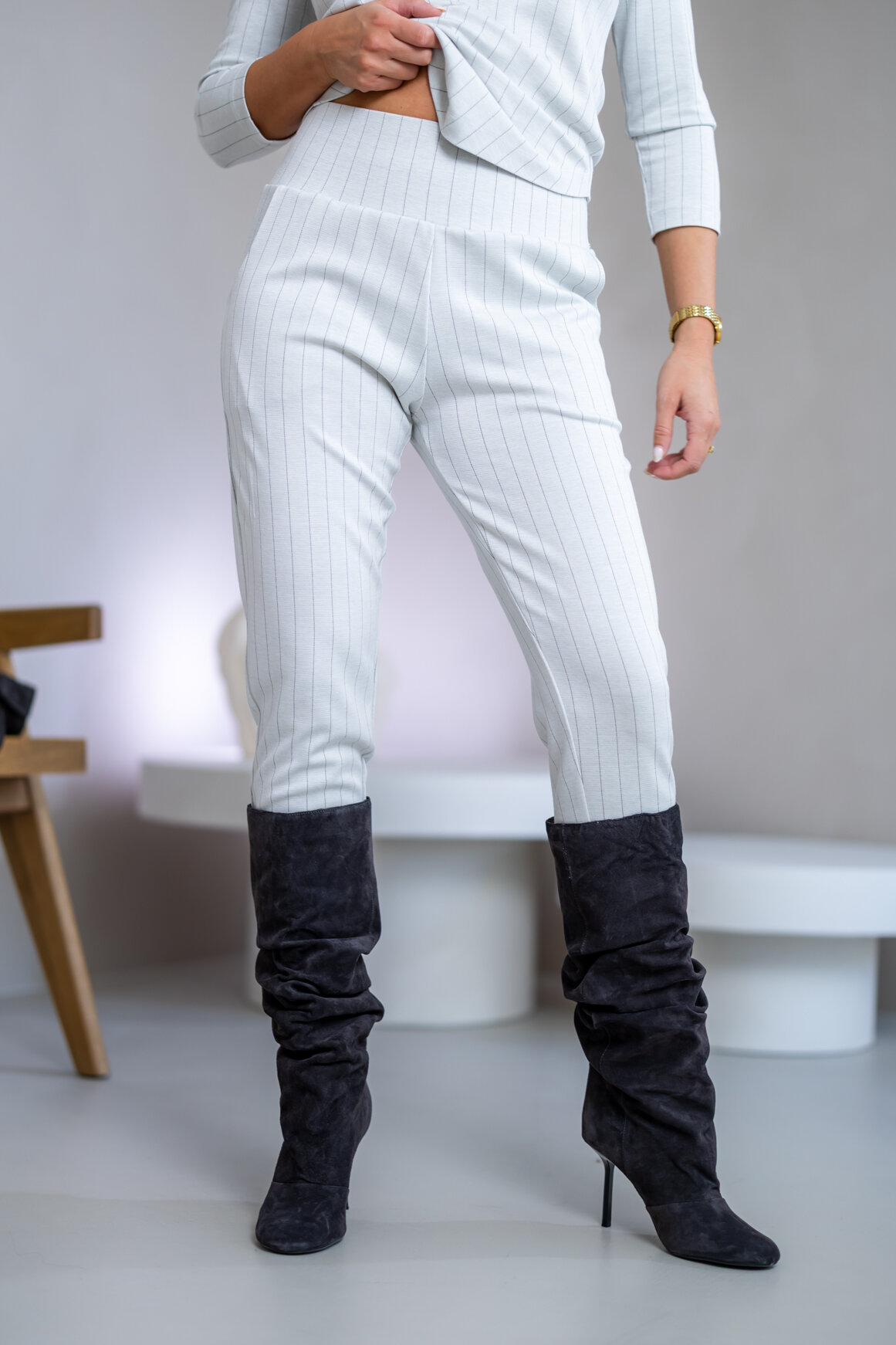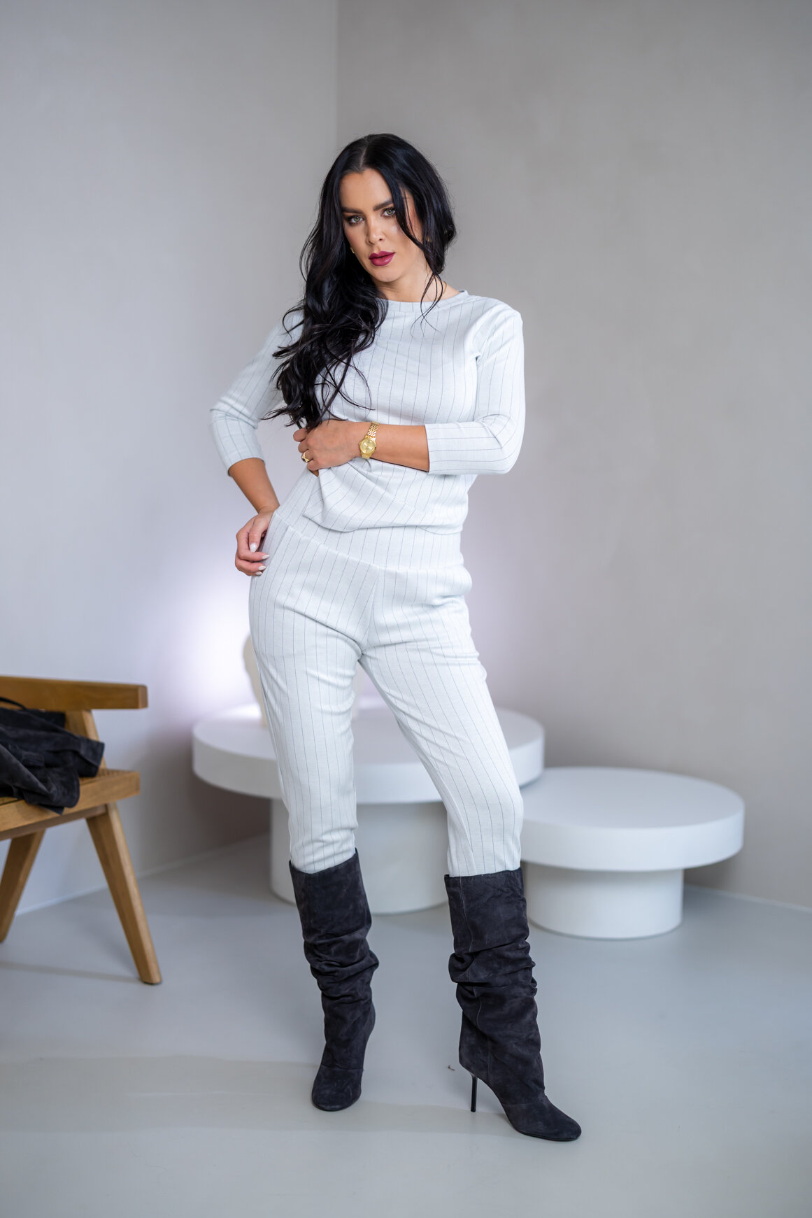 Zloženie: ÚPLET S JEMNÝM PRÚŽKOM: 70% viskóza, 25% polyamid, 5% elastan, 290 g/m2