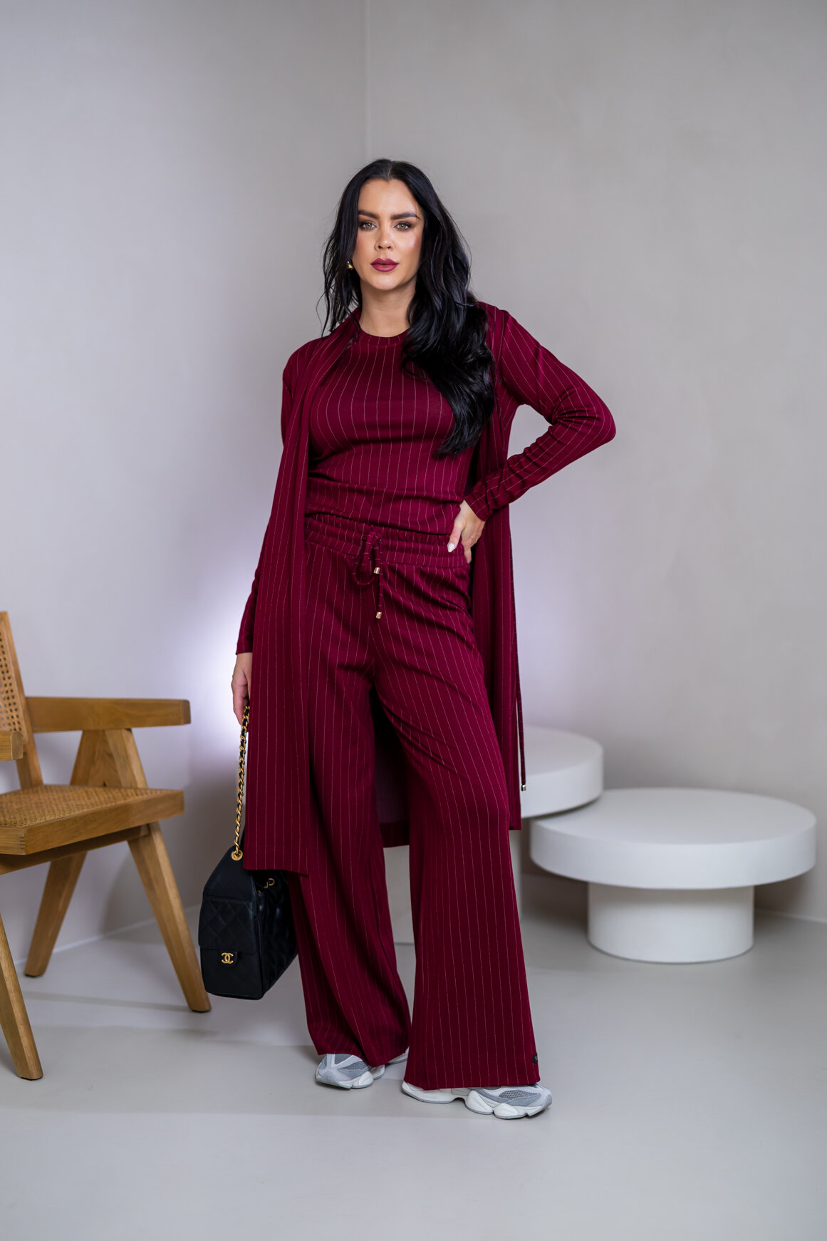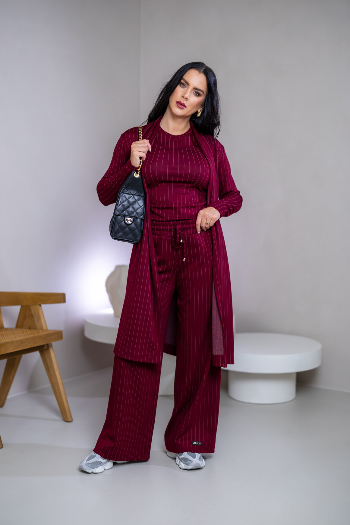 Model na ilustračnej fotke je vyrobený v odtieni OFF WHITE, BURGUNDY.