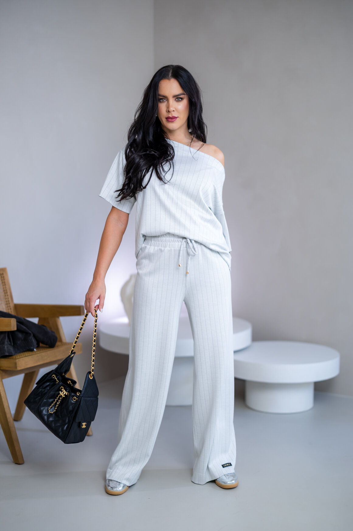 Model má oblečenú veľkosť: S/M - 170. Miery modelky : 91-76-99, výška postavy 174 cm.