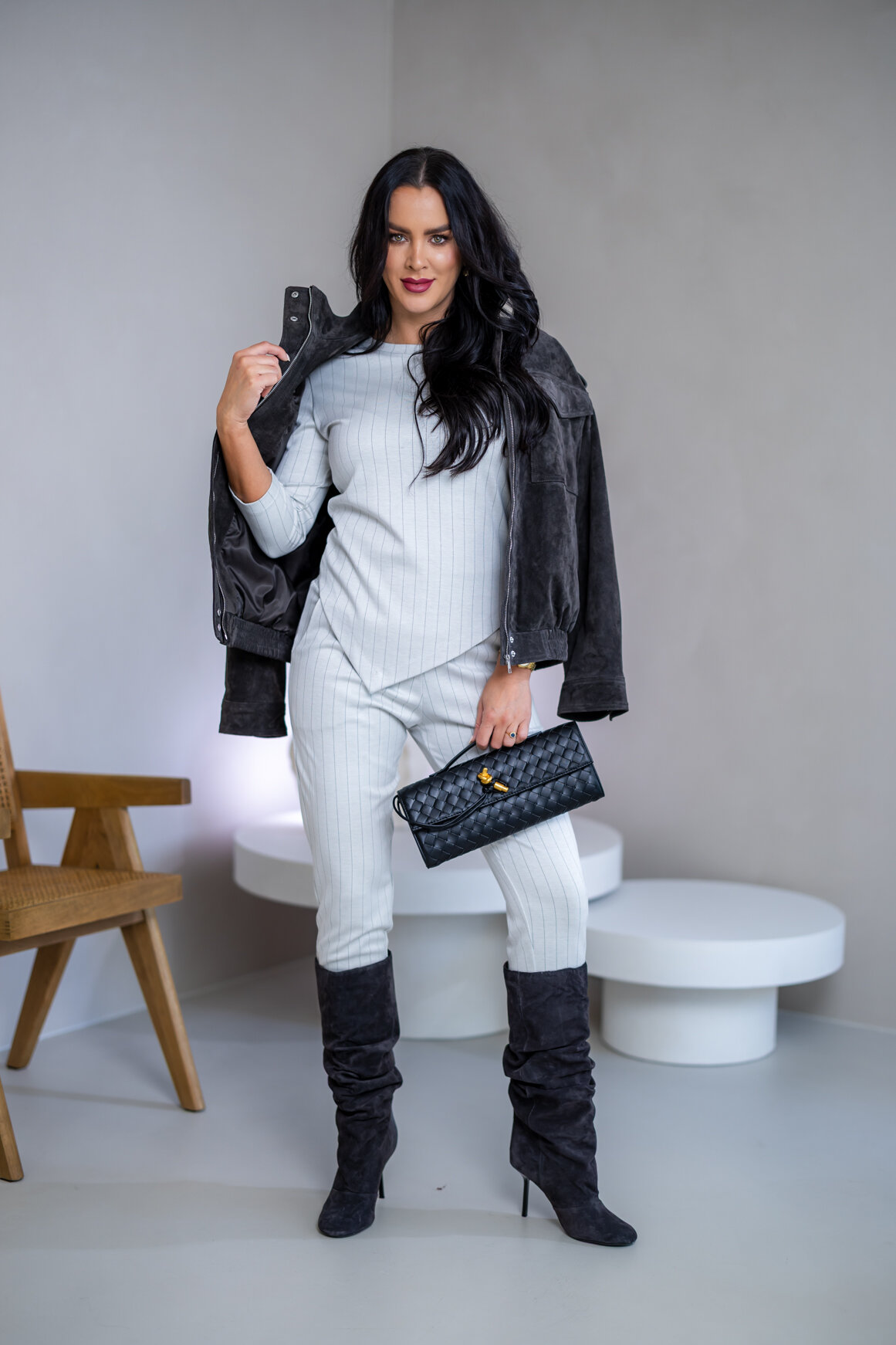 Zloženie: ÚPLET S JEMNÝM PRÚŽKOM: 70% viskóza, 25% polyamid, 5% elastan, 290 g/m2